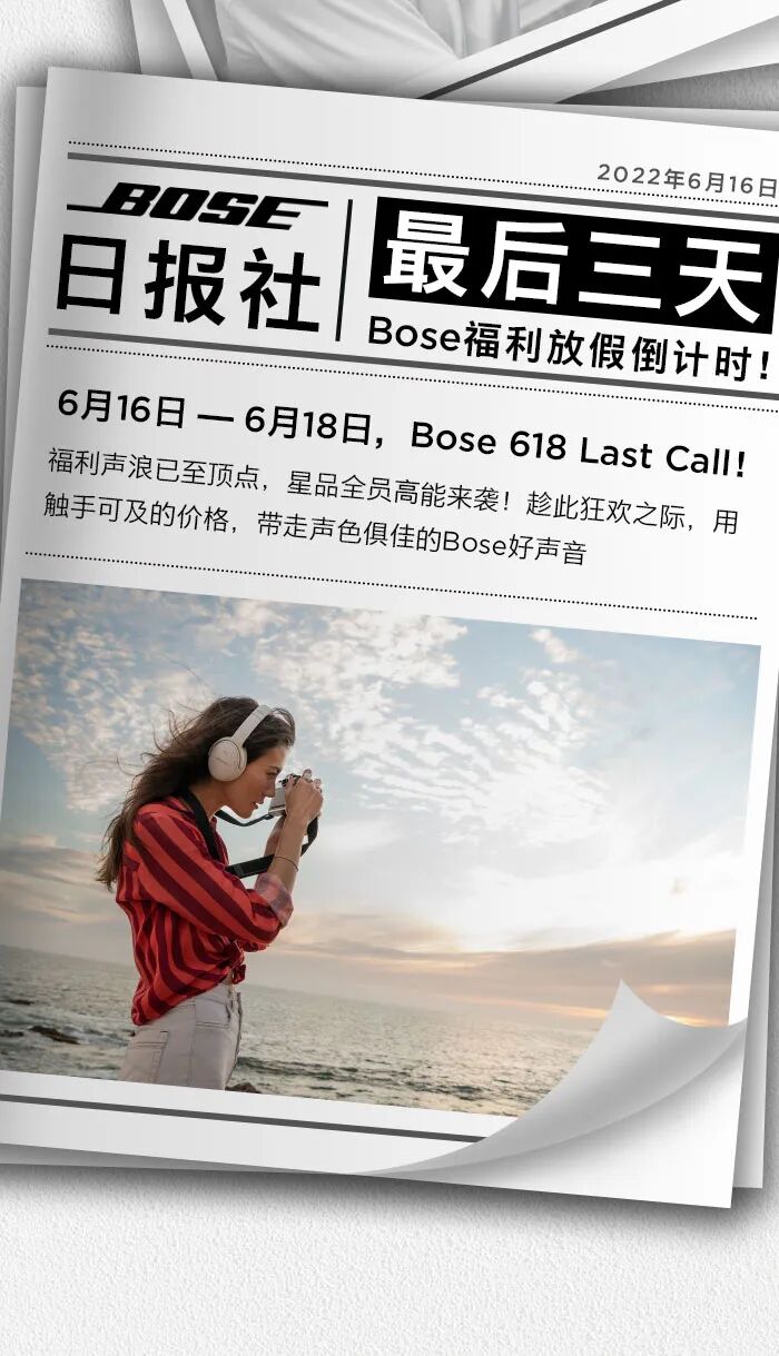 推荐:「点击切换GIF+展开」完整日报,用日报形式呈现Bose的产品和618的优惠价,吸引大家购买。
