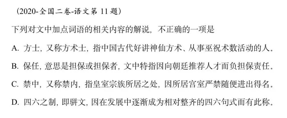 “2020年全国二卷语文文言文文化常识,最后一分钟改错了,哭了。”