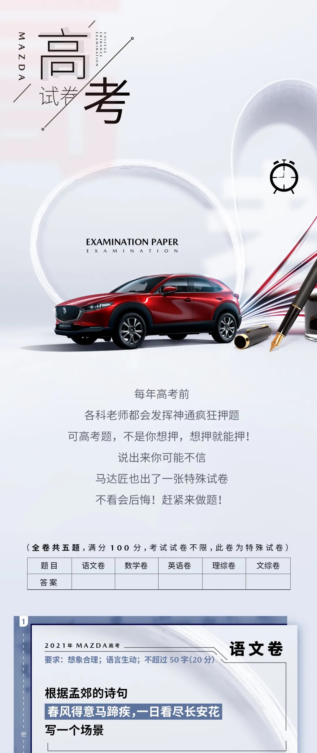 推荐:长安马自达在高考季也发布了一套特殊试卷,吸引大家“点击展开”对应题目的答案,借此为大家科普长安马自达相关的知识。