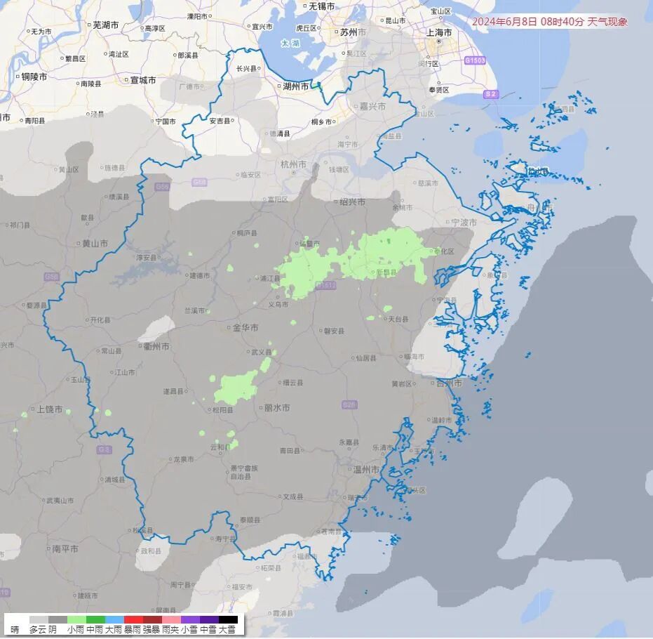今天早晨浙江省云系较多,全省大部多云到阴,金华、宁波等部分地区出现小雨的身影,预计今天中午到傍晚浙北局部有阵雨,今夜浙南地区局部雷雨,不过总体不影响出行。