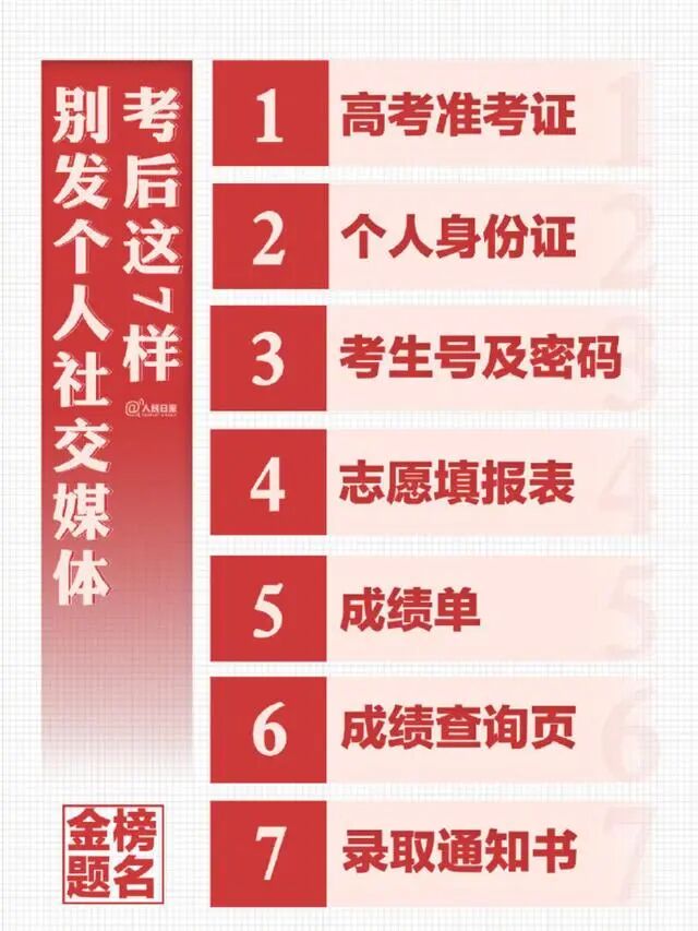 高考后,会经历很多值得纪念的时刻,不少人喜欢拍照晒到朋友圈,与大家分享喜悦。提醒各位考生,这7样东西千万不要发朋友圈,要时刻注意保护个人信息,不让不法分子有可乘之机。