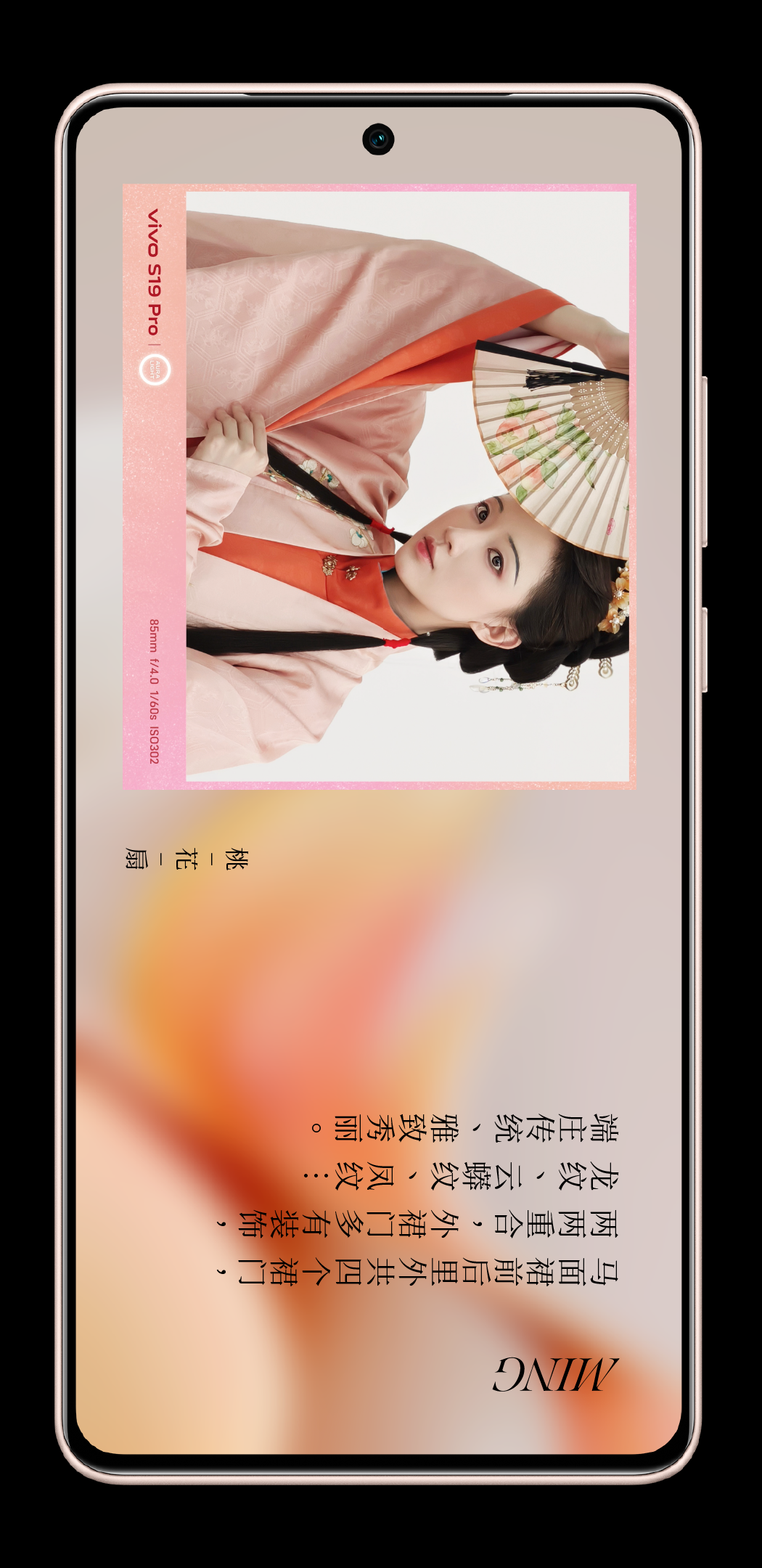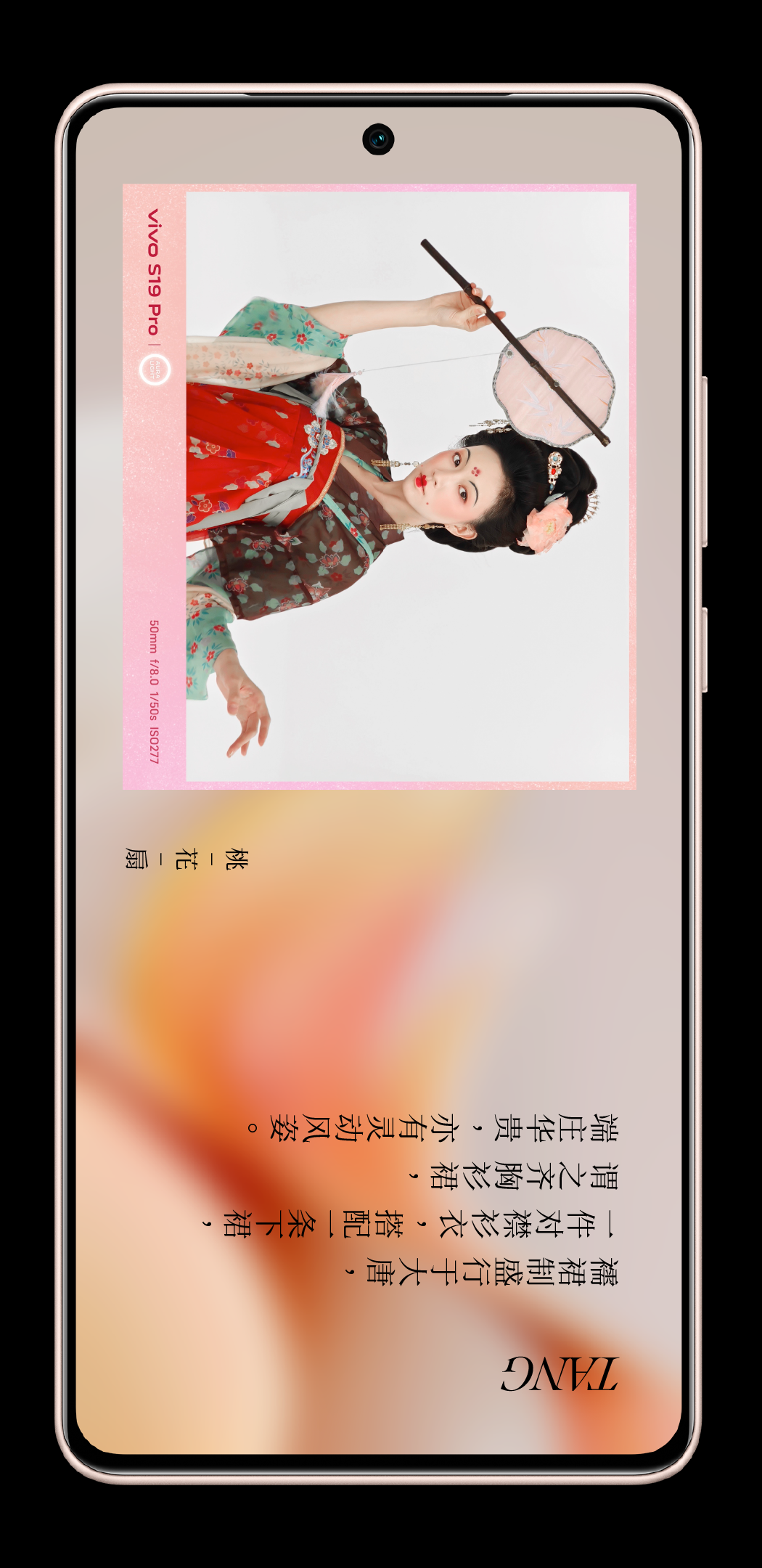 vivo S19 的「桃花扇」配色,与大唐风姿相应。
