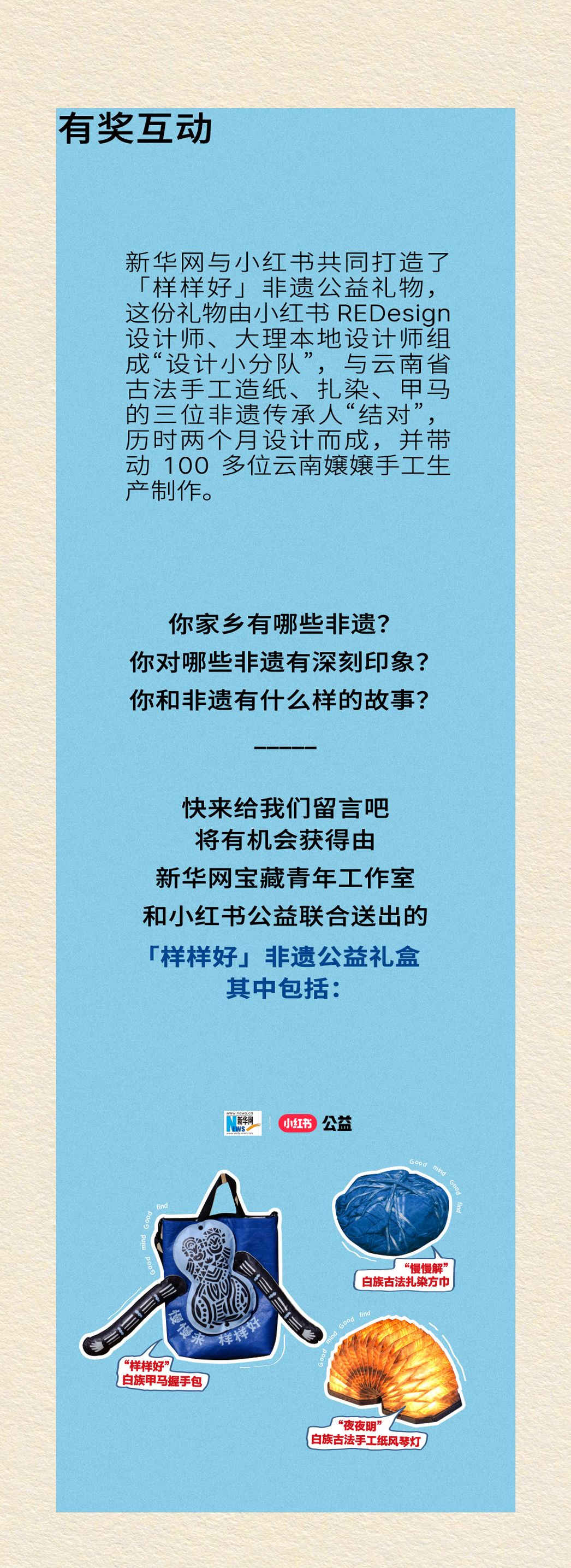 推荐:新华网与小红书通过「连续点击切换」介绍共同打造的非遗公益礼物,「左滑」查看更多活动照片,借此宣传云南省古法手工造纸、扎染、甲马的非遗历史。