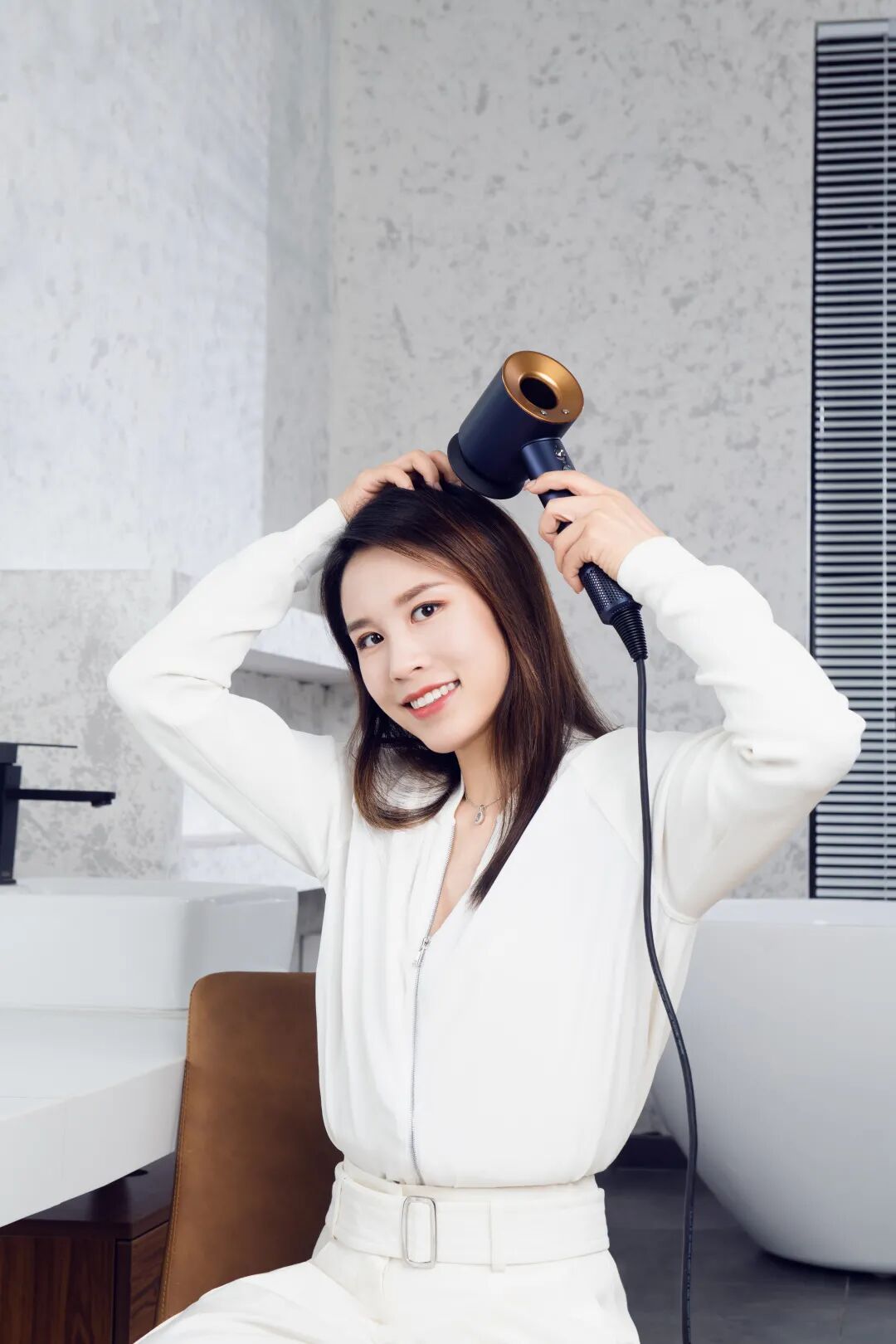 同时,依托于戴森第九代专利数码马达产生的足够强劲的气流,使得造型不需要一味依赖高温,这也避免了传统造型产品因温度过高所造成的不可逆转的发质损伤,让孙一文再也不用担心损伤发质的问题,从此秀发更加健康有光泽!