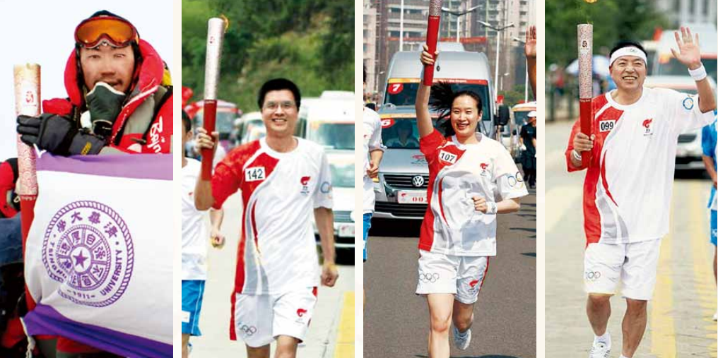 严冬冬、姚强、周小菁、栗德祥、邵昶魁、曹振水、张玲玲、陈孝伟、肖丽丽、李希光、孙晓、黄海军、罗福午、陈国青、陈楠、胡洁、马新东、王一南、胡凯、黄晓霞共20位清华人担任北京奥运会火炬手。