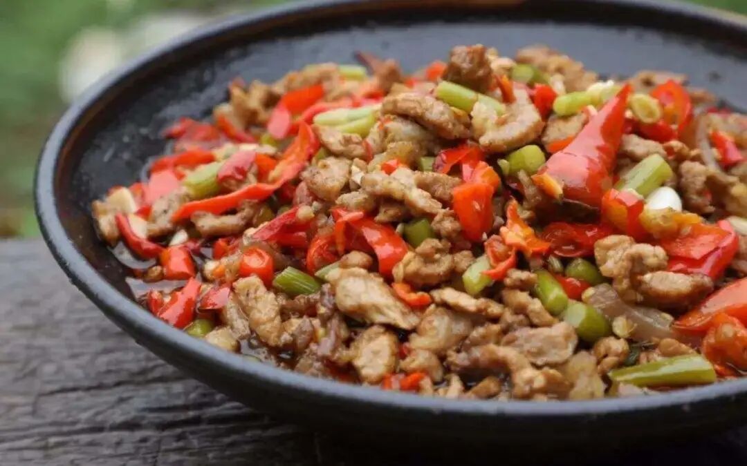 油菜、白菜、空心菜等,江西人都更喜欢取其菜梗,加小米辣、蒜末、豆豉和酱油爆炒,这样做的目的是保证口感脆生,不会因为出汤而导致口感疲软,菜叶与菜梗分开炒,听起来不复杂,吃起来却有大惊喜。余干辣椒炒肉