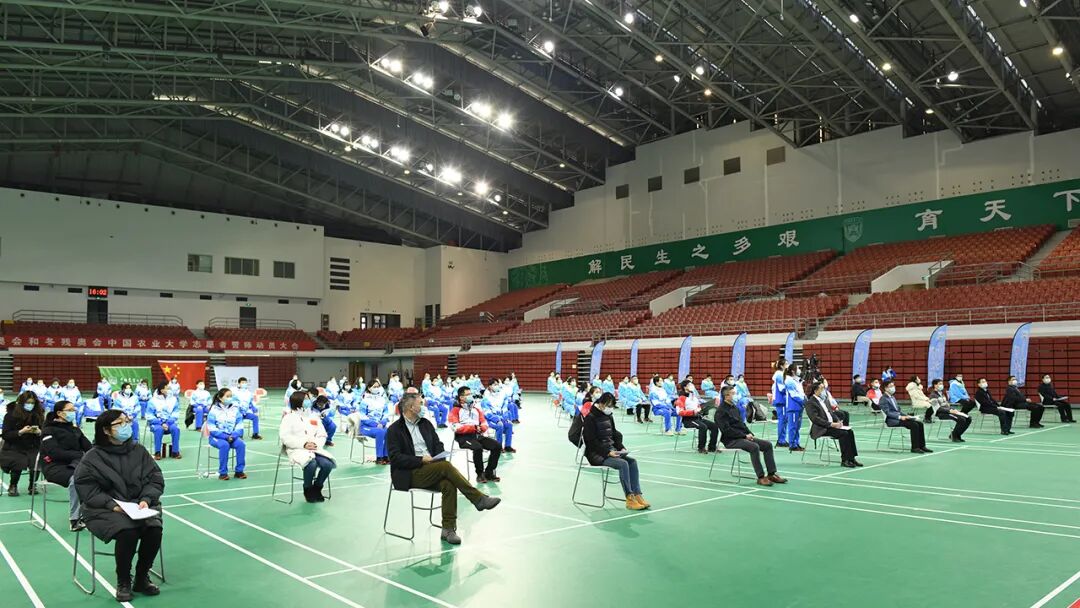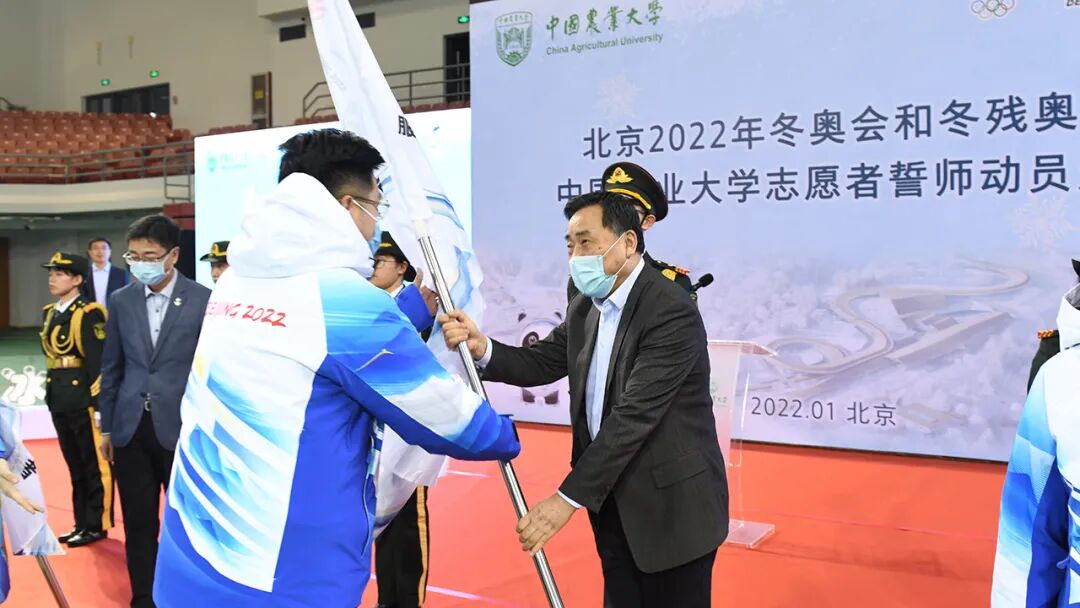姜沛民表示,中国农大的奥运场馆为世界奉献了“四十年来最出色的摔跤比赛”和“难以超越的坐式排球赛”。从奥运场馆落户农大那一刻起,与场馆一同拔地而起的是农大人心中的奥林匹克精神与文化。“更快、更高、更强、更团结”的奥运精神在每一位农大人心中生根发芽,发扬光大。而今奥运圣火再次在北京燃起,相信大家一定能够接过前人的接力棒,续写中国农大与奥运的特殊情缘。他对整装待发,即将奔赴冬奥战场的老师同学们提出三点希望:一是要在服务冬奥中勇担使命、展现风采。北京2022年冬奥会和冬残奥会不仅是一次体育盛事,还是北京城市形象和中国国家形象的一次集中展示。大家能身临其境,参与其中,是莫大的光荣与使命。希望大家勇担使命,以坚忍不拔的定力干好一件件“小事”,以出色的实际行动展示农大师生的风采,为母校争荣誉,为国家树形象。二是要在服务冬奥中坚毅前行、踔厉奋发。志愿服务是一个光荣而伟大的事业,大家选择了这份光荣和伟大的同时,也意味着承担了与这份光荣和伟大相对应的责任。希望大家耐得住生理与心理的双重考验,不畏艰苦,不惧困难,勇毅笃行,以高站位落实大担当,以最贴心的服务,最美丽的微笑,最认真的态度圆满完成服务保障任务。三是要在服务冬奥中珍惜机遇、锻炼成长。此次冬奥之旅对于大家而言不只是一次任务,也是一次淬炼本领的经历、一次弥足珍贵的锻炼、一次实现价值的机会。希望大家要树立笃行不怠的作风,不断加深对奥运精神的理解,进一步坚定“四个自信”,上好冬奥会这门“大思政课”,用习近平新时代中国特色社会主义思想领航,将冬奥会中的所知所感所悟,转化成投身社会主义现代化强国建设的源源动力,转化为实现中华民族伟大复兴的坚定信心。