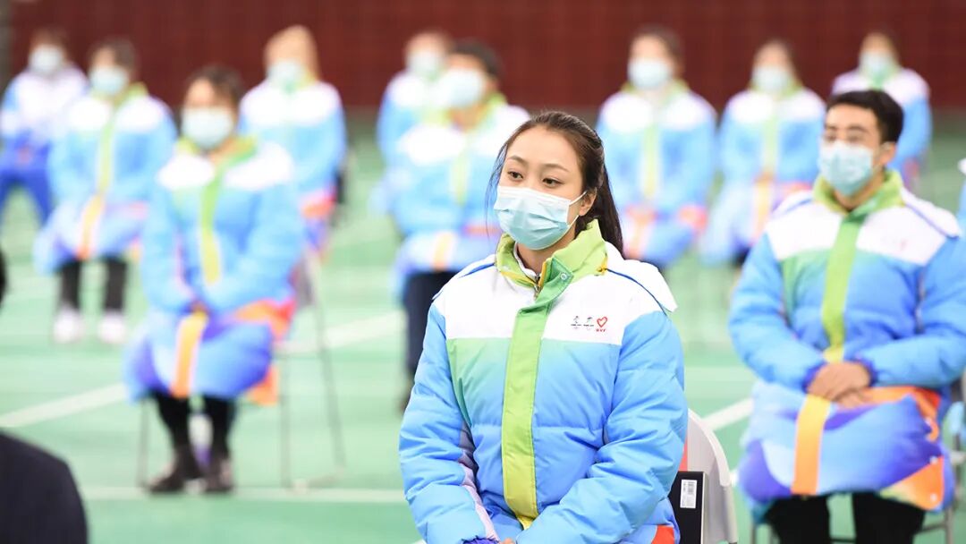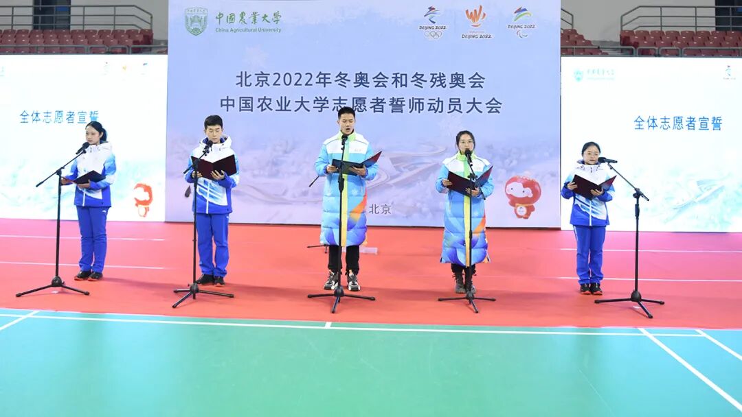 随后,全体志愿者庄严宣誓:我志愿参加北京2022年冬奥会和冬残奥会志愿服务,使命重大,任务光荣!我将做到:听从指挥,服务大局;全力以赴,团结协作,弘扬奥林匹克精神,践行志愿服务理念,为祖国争光,为冬奥添彩!共同为举办一届简约、安全、精彩的冬奥盛会贡献青春力量!