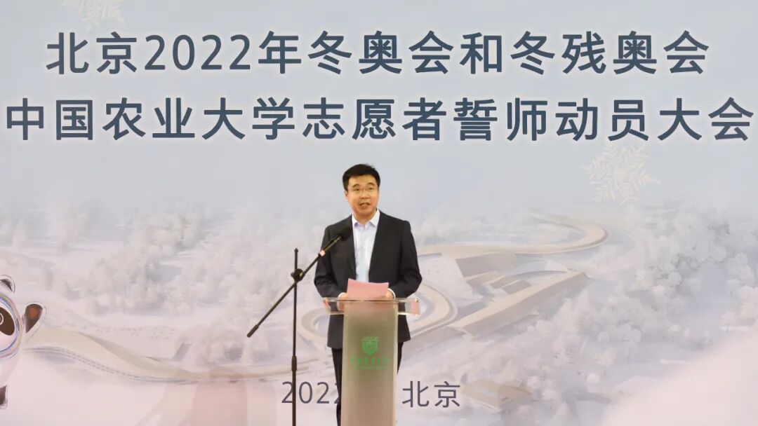 姜沛民代表学校对一直以来关心和支持中国农业大学冬奥会服务保障工作的冬奥组委、团市委以及国家雪车雪橇中心表示感谢,对学校服务保障冬奥会的各相关职能部门和经理团队、工作专班的师生表示慰问,并回顾了学校师生14年前服务保障北京夏季奥运会的情况。他指出,今天在2008年北京夏季奥运会场馆里举行2022年北京冬奥会志愿者誓师大会,具有一番特别的意义。这既是为了回顾我们在筹备奥运会工作中共同走过的光荣历程,也是为了一届即将到来的冬奥盛会,更寄托着学校党委对广大志愿者师生的真切祝福和希望。
