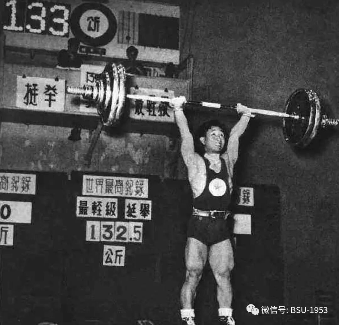 1956年,我校校友举重名将陈镜开创造中国第一个世界纪录。