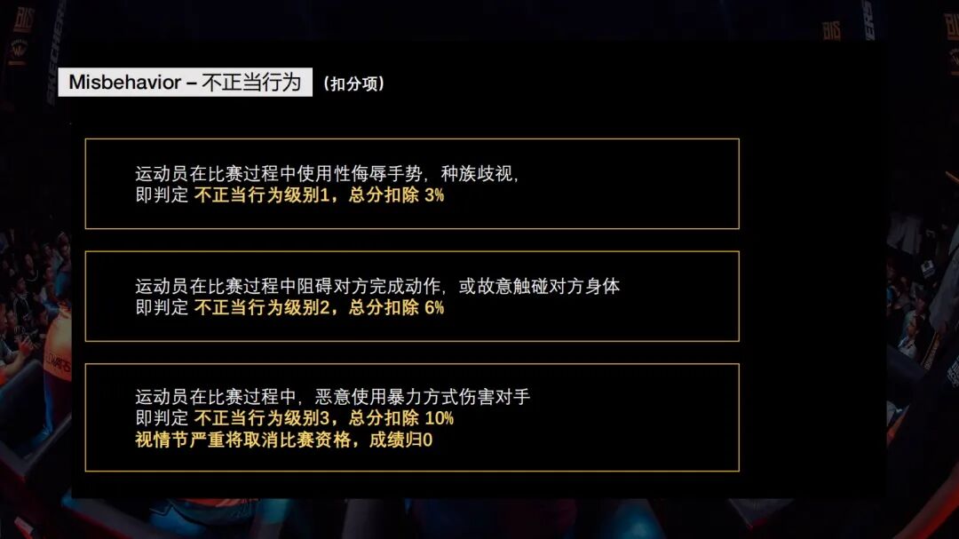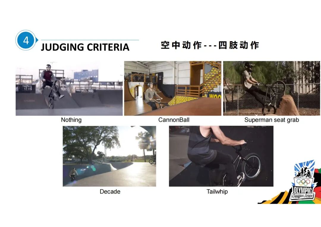 此外,比赛中场地使用、落点、流畅度、创意、风险因素也是裁判需要考虑到的。比赛中的动作失误、未能充分利用比赛时长等都会被视为扣分项。