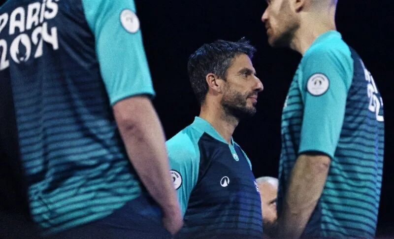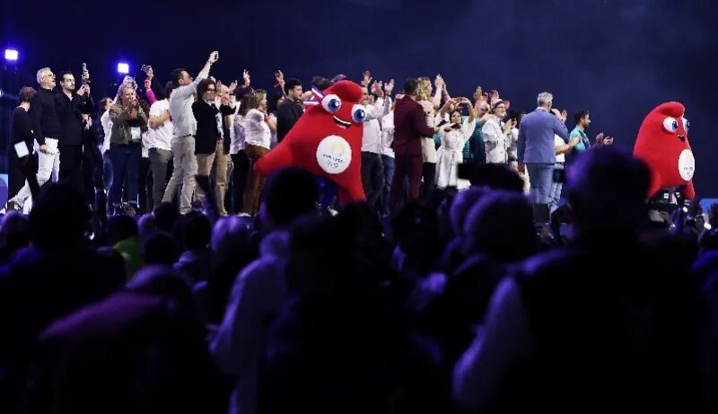 巴黎奥组委主席托尼·埃斯坦盖(中)出席巴黎奥运会志愿者大会