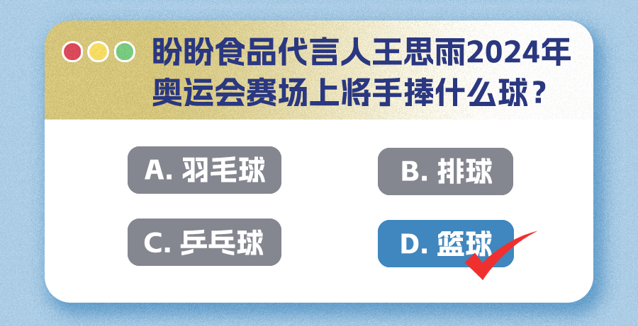 推荐:盼盼通过「点击答题」的交互推出2024奥运会模拟试卷,其中穿插企业信息宣传,吸引更多客户互动领取盼盼奥运助威礼盒。