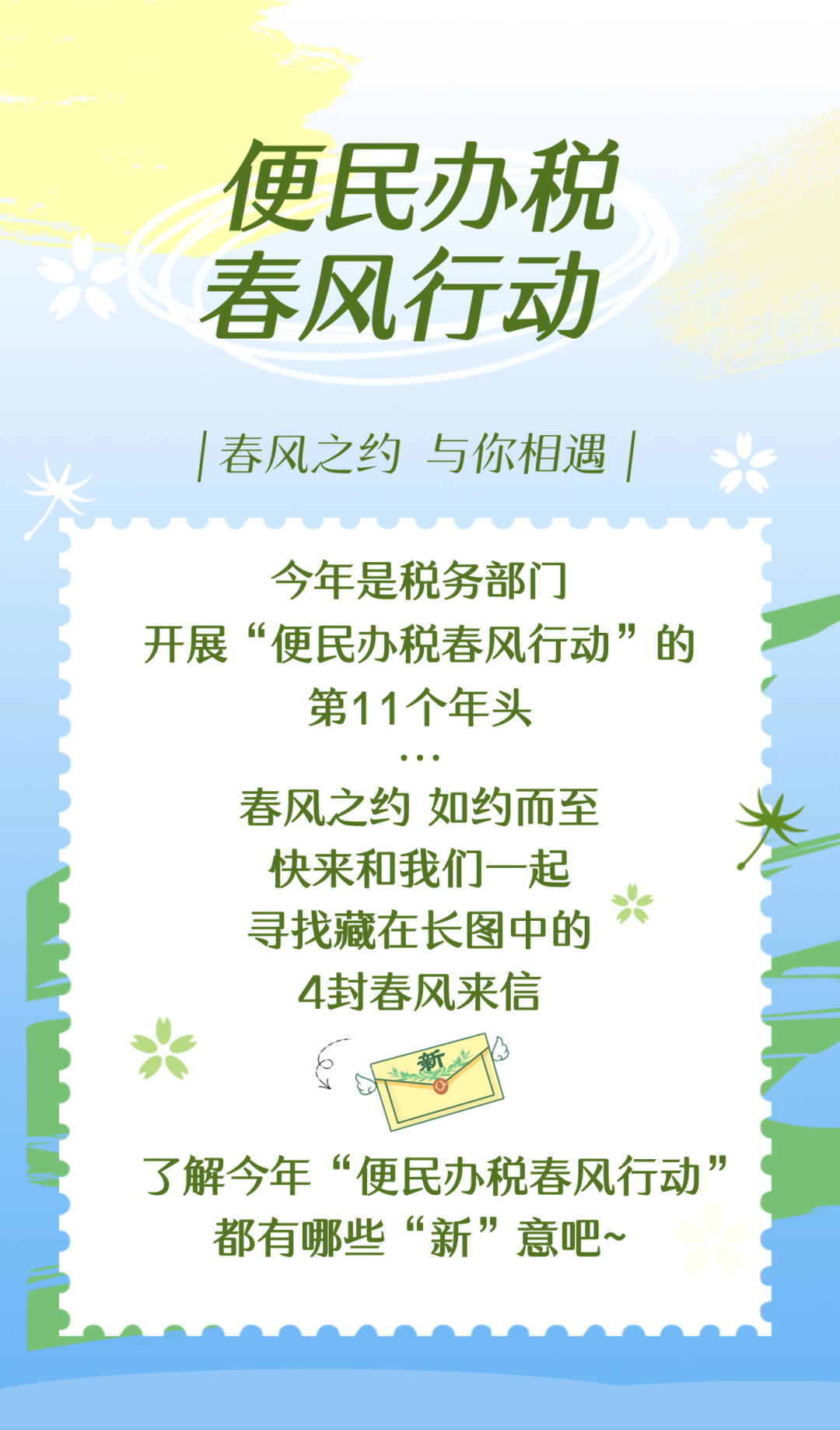 推荐:「点击弹窗」查看藏在长图中的4封春风来信,借此宣传今年“便民办税春风行动的“新”政策。