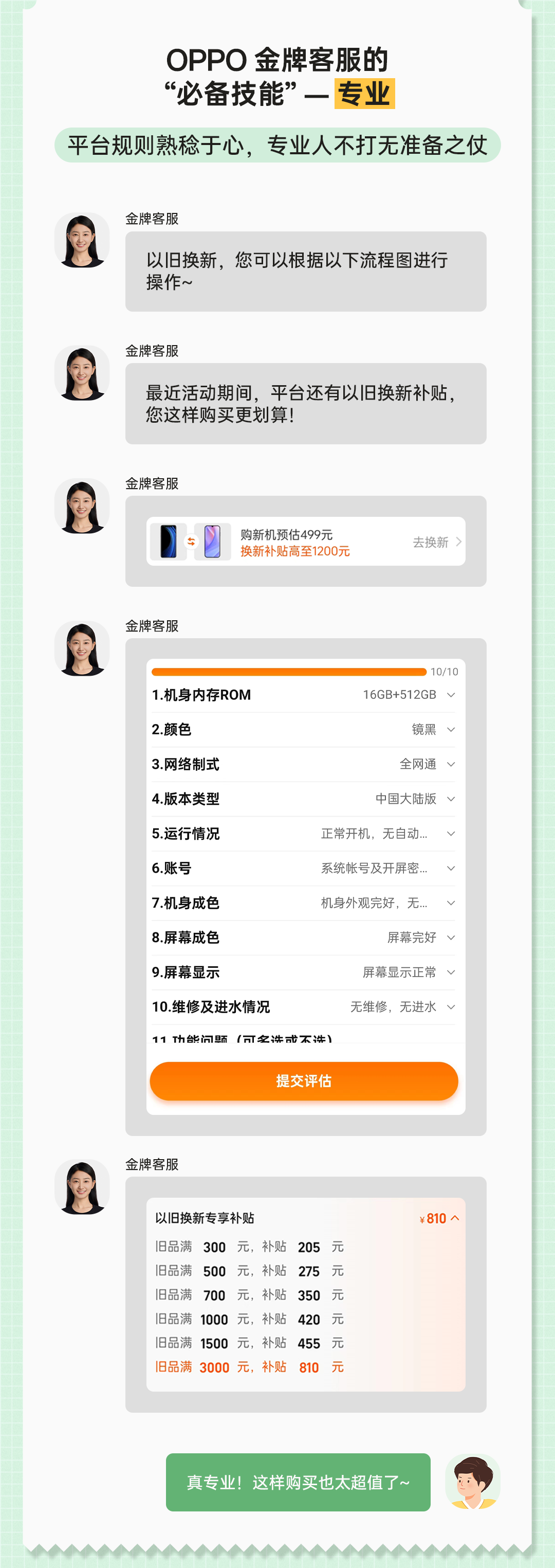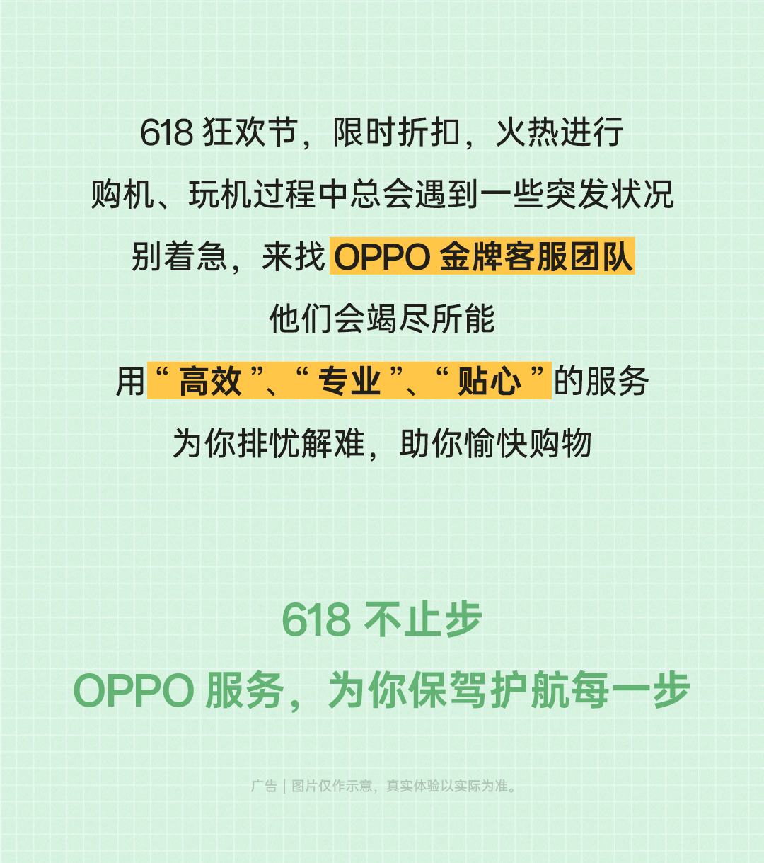 推荐:「点击切换后展开」OPPO金牌客服团队服务的介绍,借此宣传OPPO服务,吸引更多客户趁618狂欢节购买新机。