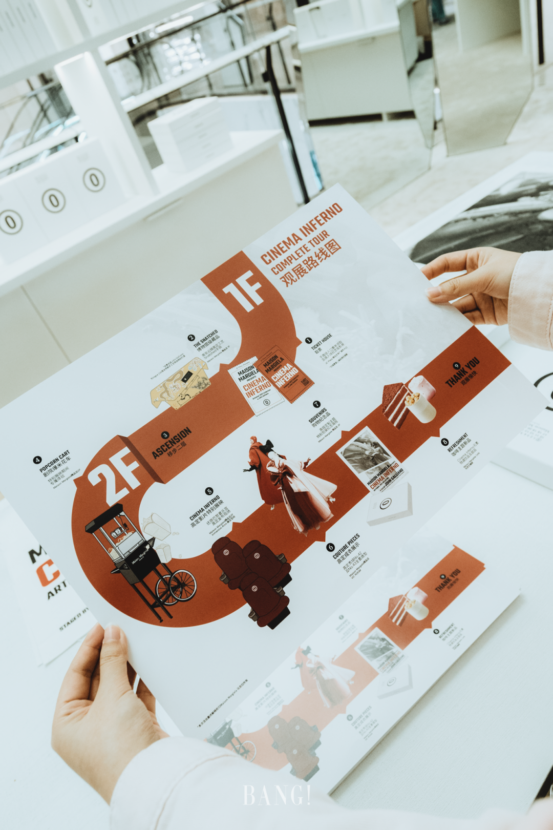 除此之外,还有精美的主题周边哦!简约的“爆米花桶”带回家既可以冰酒,也可以插花,好看还实用。Maison Margiela为限定电影院特别设计的纪念版针织海报更是超抢手,只送不卖,一定别错过!这里也有纸质版观展路线图可以领取,根据路线图的指示再好好逛一圈吧!