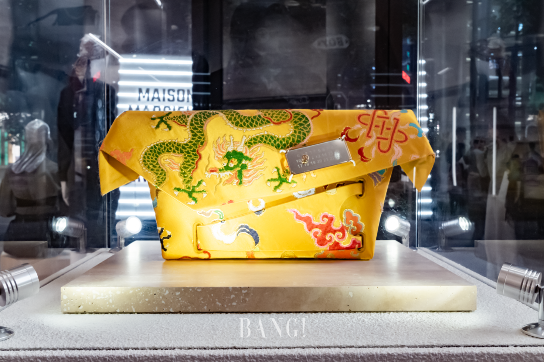 当我们移步至一楼店内,可以看到全球限量2只的博物馆级藏品——南京云锦高定工艺Snatched手袋。这是John Galliano为Vogue130周年特别设计的新包,采用Martin Margiela经典的折纸包包型的同时,包面上中国龙袍元素的加持更让这款手袋凸显文化底蕴。作为意大利奢侈品集团OTB旗下的时尚先锋品牌,Martin Margiela始终将时尚展示为有涵义的艺术。值得一提的是,Martin Margiela近期多款新品重磅上线,时髦精们速来get!