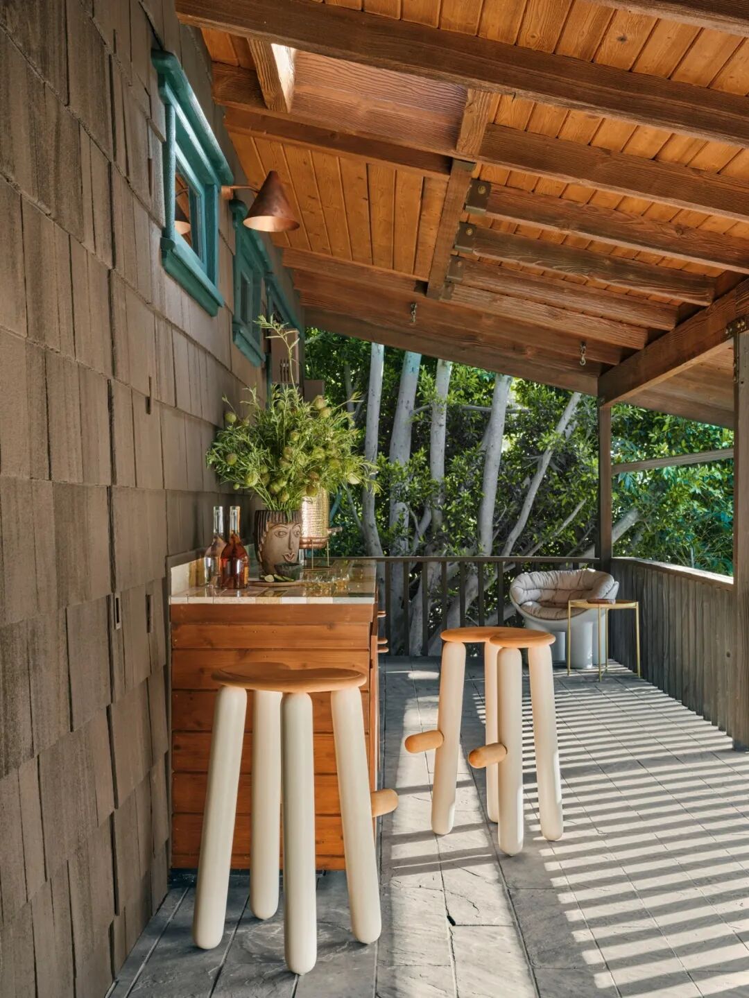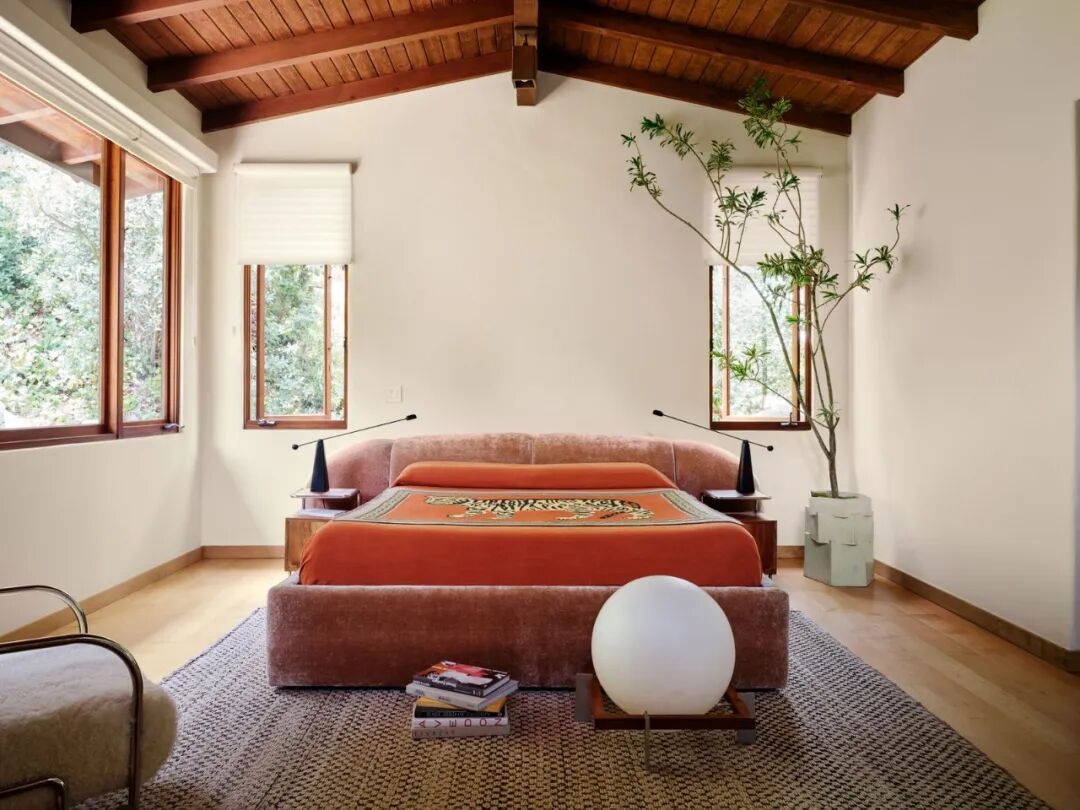 建筑本身始建于1955年,毗邻比佛利山庄邮局(Beverly Hills Post Office),外墙和屋顶覆盖着雪松木瓦片,散发出北加州嬉皮现代主义混搭波西米亚风格的气质。用Emma的话说:它像是太浩湖畔,山林间小精灵住的木屋。“这栋房子建于1950年代,却没有幽闭恐怖的感觉,这是很罕见的......我平时都在家工作,所以想在家创造一些非常个性但也舒适的元素。”Emma说道。