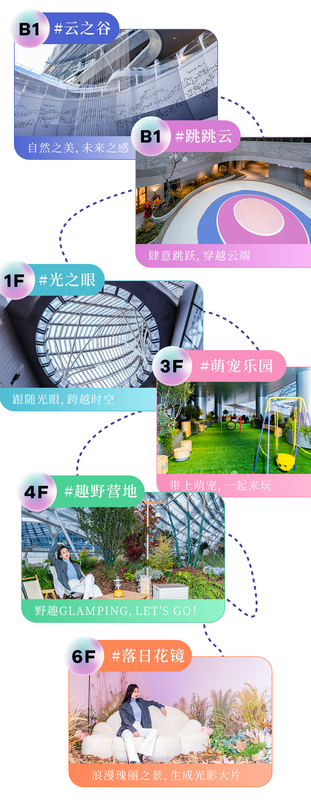 你或许有个疑问:AI PLAZA是如何将艺术与科技相结合的?从位于头顶上方的圆形屏幕,到贯穿4个楼层的科技瀑布屏,你可以亲身体验召唤凤凰,感应非凡的四季变幻,以及步步有景的AI视觉享受。![]()