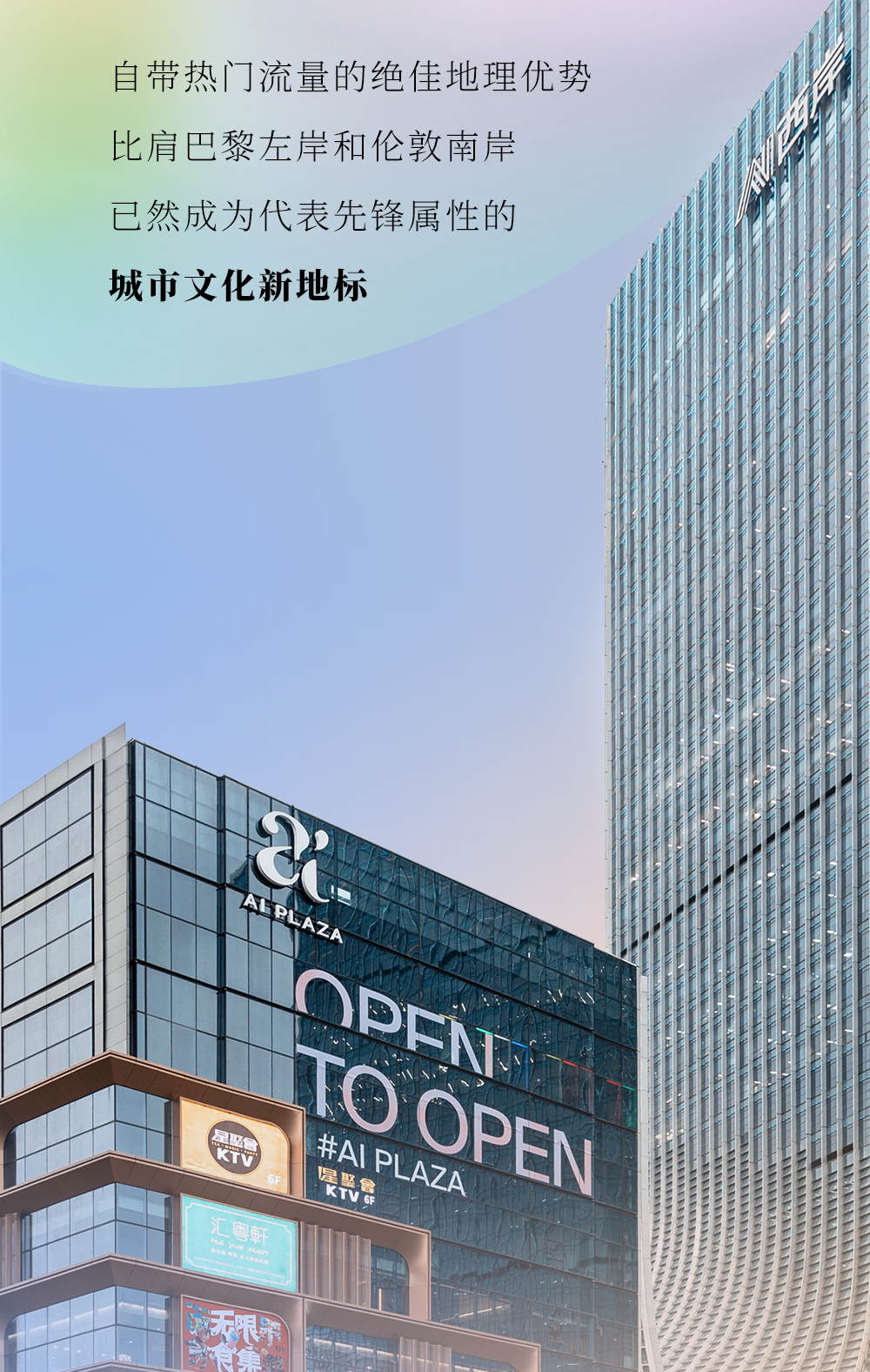 坐拥如此优越地理环境的西岸,终于迎来了上海西岸集团首个旗舰商业项目——AI PLAZA西岸凤巢(以下简称AI PLAZA)。将艺术与商业巧妙结合的TA,到底会呈现怎样多元化的面貌?现在来看。![]()