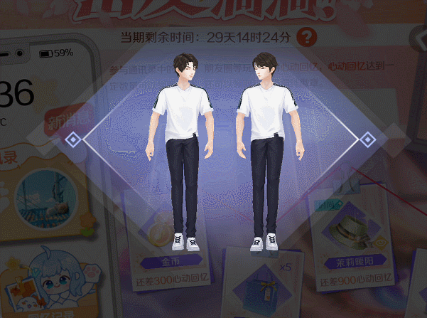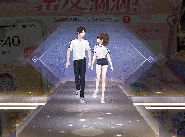提升好友羁绊关系,达到指定心动回忆值后,本期可兑换轻奢组合装-青钰遥岸、羁绊动作徽章-星光T台等好礼~