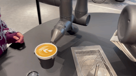 展览期间,还有“如影智能咖啡大师”到场助阵。它可不是一普普通通的咖啡机哦~它是一个十分聪明的拉花咖啡机器人,两个灵活的机械臂仅需几十秒时间就可以制作一杯超有艺术感的精品拉花咖啡。