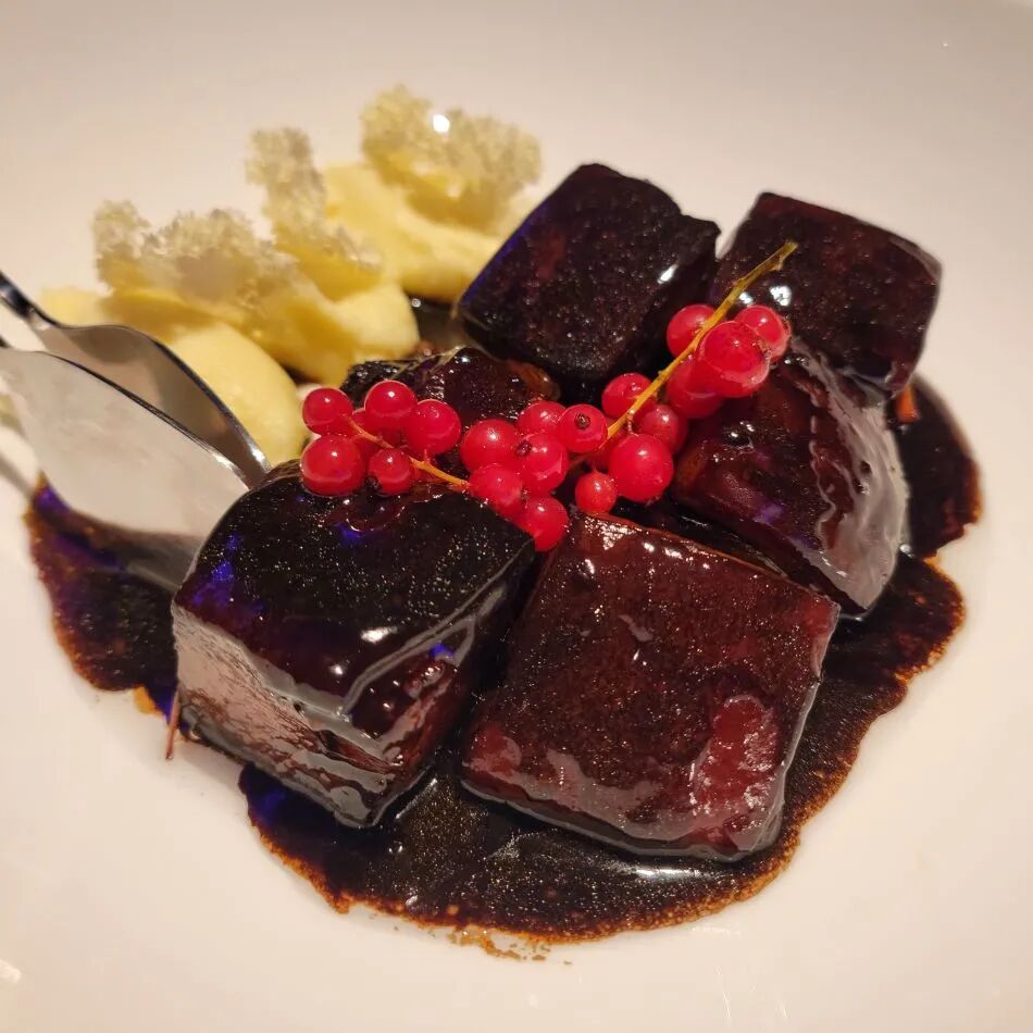招牌菜为黑松露烧南非三头吉品干鲍配意大利奶油饭、干式熟成罗西尼牛排和焦糖肥肝、海胆红花汁炖荷包翅、董氏葱烧海参等。新式京菜,快来品鉴一番~