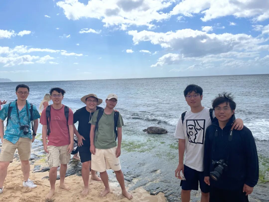 黄融杰(左四)和课题组一起参加学术交流会议