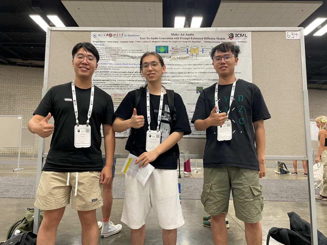 进入实验室后,研究方向是什么?人工智能研究领域重要分支——语音/音频生成。这是新兴领域,国内研究的人并不多;也是重要领域,国内的研究还落后于国外。这激发了黄融杰的斗志,又开始了一场从零开始的探索。以歌声合成为研究方向,在实验室师兄的指导下,黄融杰在大四就顺利发表第一篇CCF-A类会议论文。此后,他不局限于眼前收获,而是开始认真思考自己应当专攻的具体研究领域。深思熟虑后,他敏锐地将目光锁定在语音音乐生成模型,多模态语言处理等,这些技术在当下十分火爆的GPT-4、Sora等生成式人工智能中均发挥着重要作用。