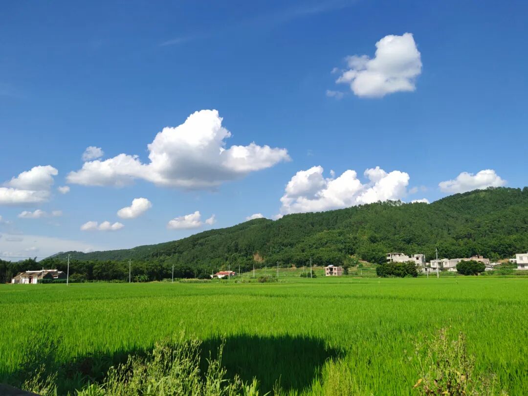 这张照片是我在艺考培训一个月后回到老家拍的,湛蓝的天空下,绿油油的稻田里,每一根水稻都肆意生长着,寓意着生机与活力。在这一瞬间,眼前的风景足以治愈被各种考试束缚的我,风起稻香,沁人心脾,面对这美好的田野风光,我对未来的生活充满了向往。