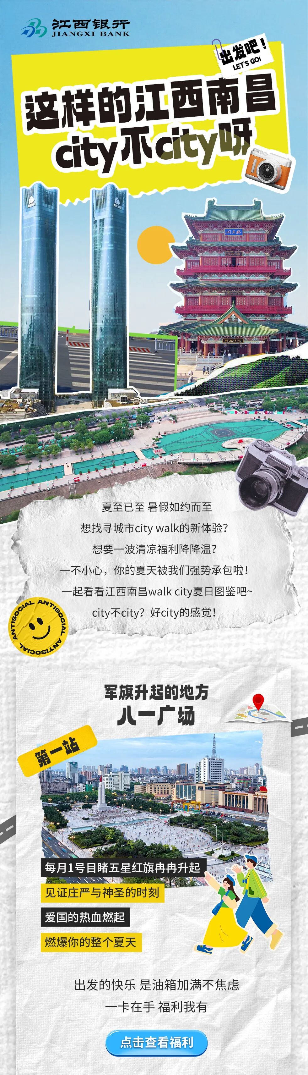 推荐:「点击展开」江西南昌walk city夏日图鉴,吸引大家参与江西银行信用卡惊喜福利活动,从而宣传江西银行。