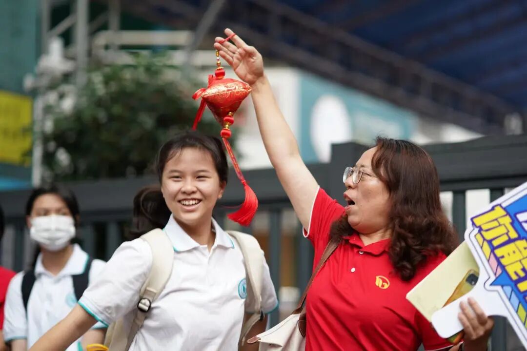今年高考一考点,考生跳起头顶粽子,希望自己能够一举高“粽”!
