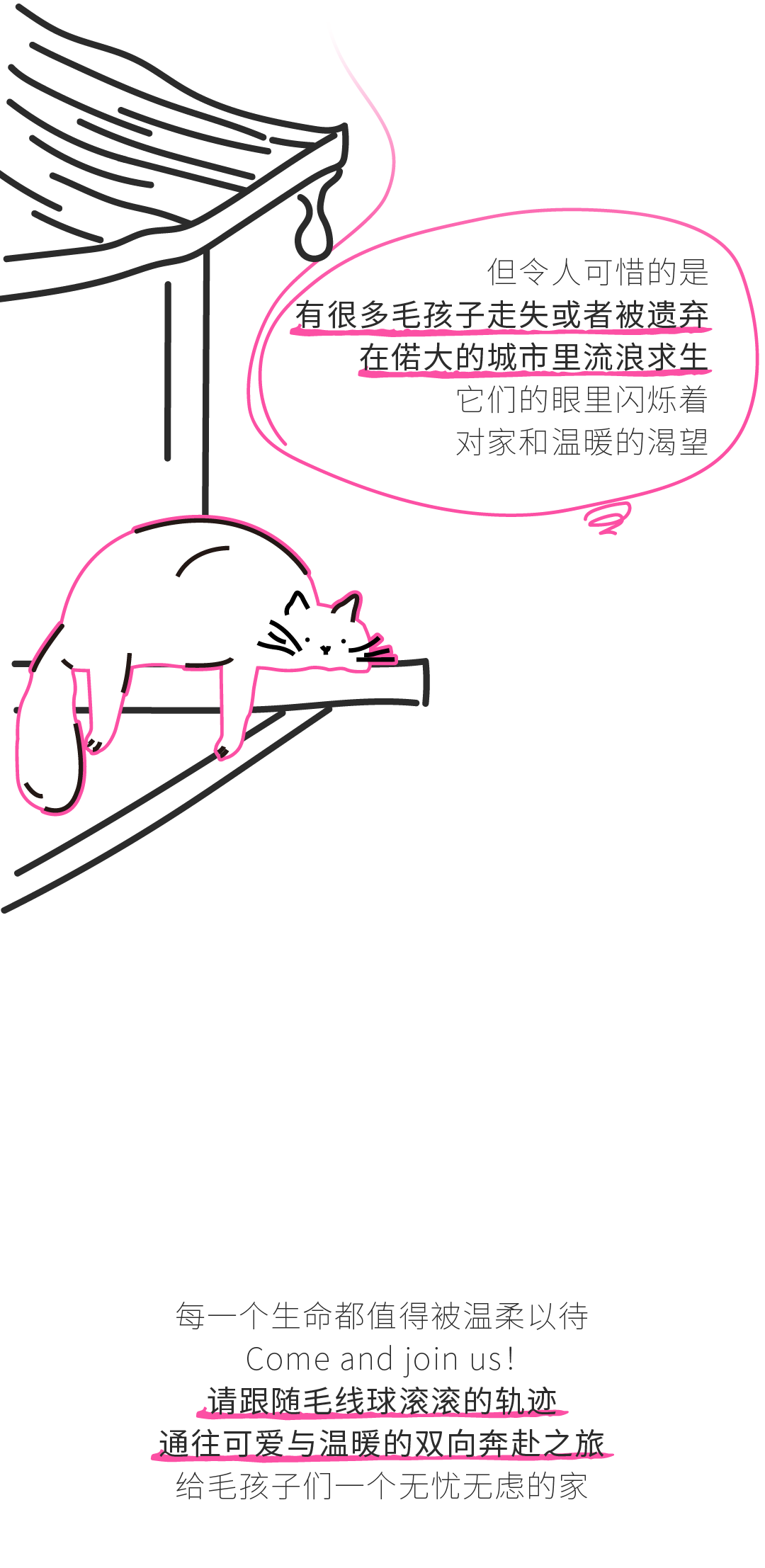 推荐:「三层上滑」模拟毛线团经过毛线球滚滚的轨迹,「自动轮播」展示不同的宠物,吸引更多人用领养代替购买。