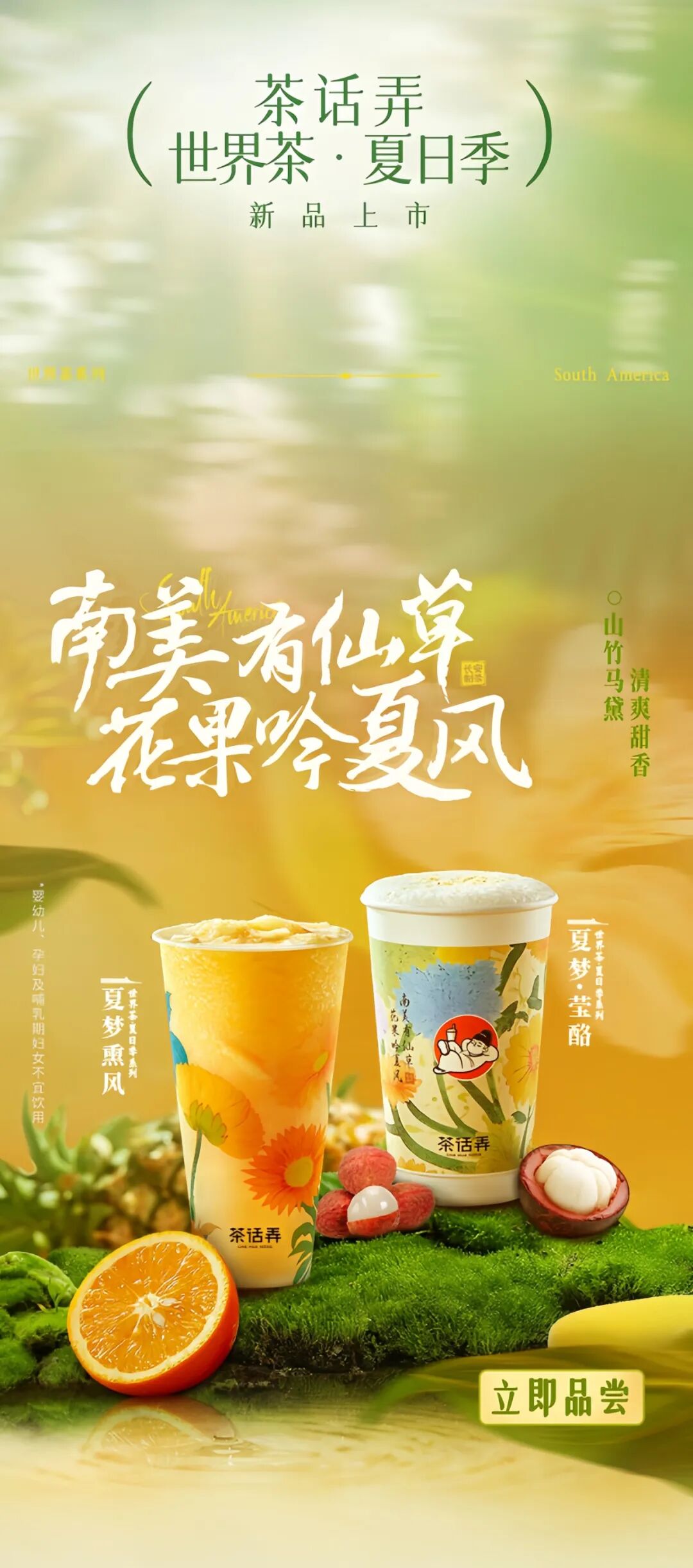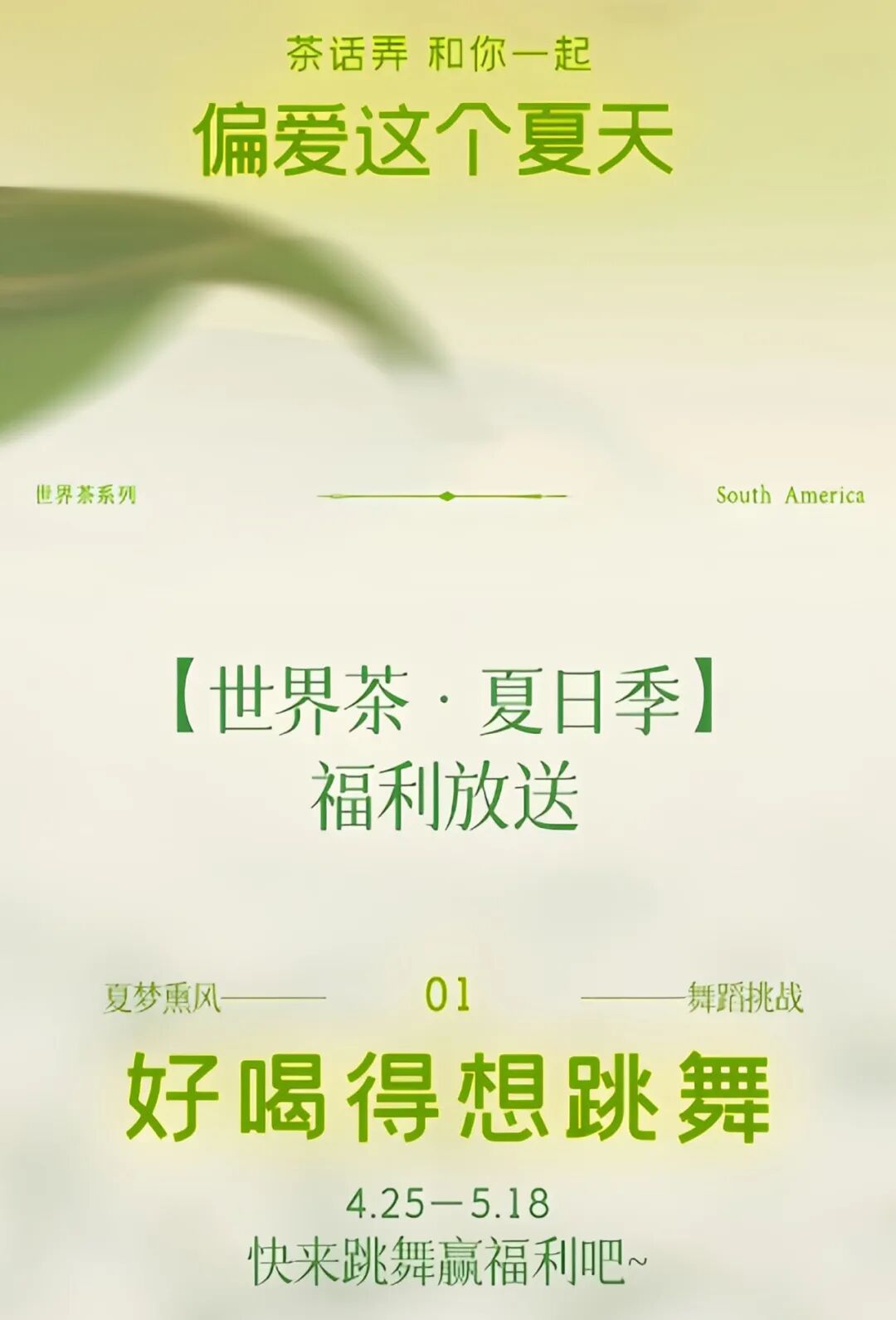 推荐:以对南美的第一印象为话题,引起大家的关注和好奇,通过「点击消失后展开」介绍茶话弄新品,借此吸引读者前往购买。