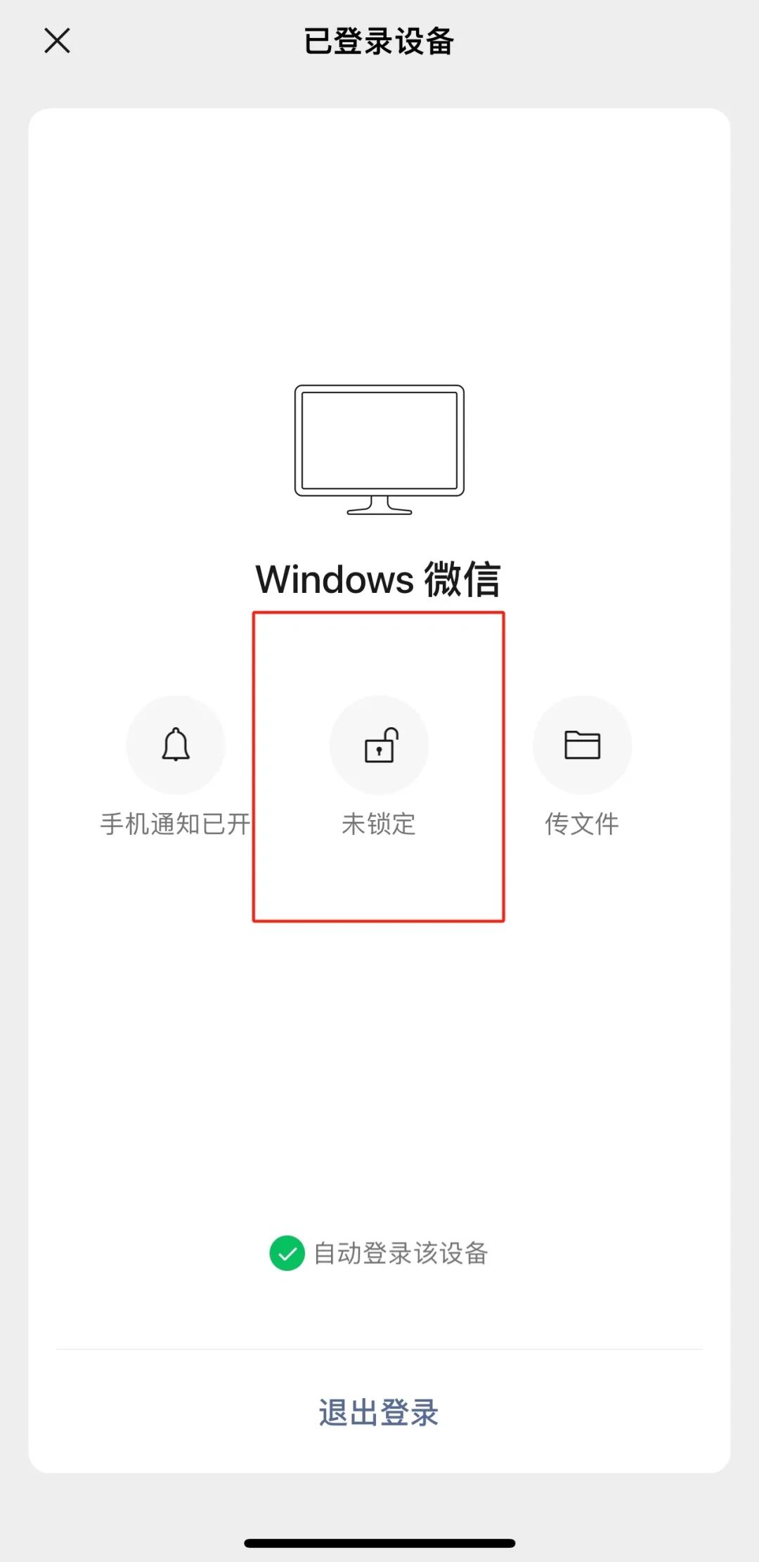 是谁,离开电脑总忘记退出微信?在手机上可以为微信远程上“锁”。