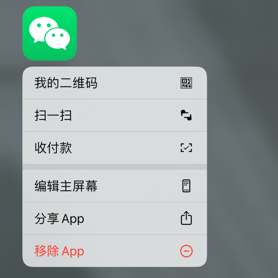 长按微信图标,就能快速出示二维码、收付款码,或者快速打开扫一扫,不管是加好友还是买东西,都一秒的事儿。
