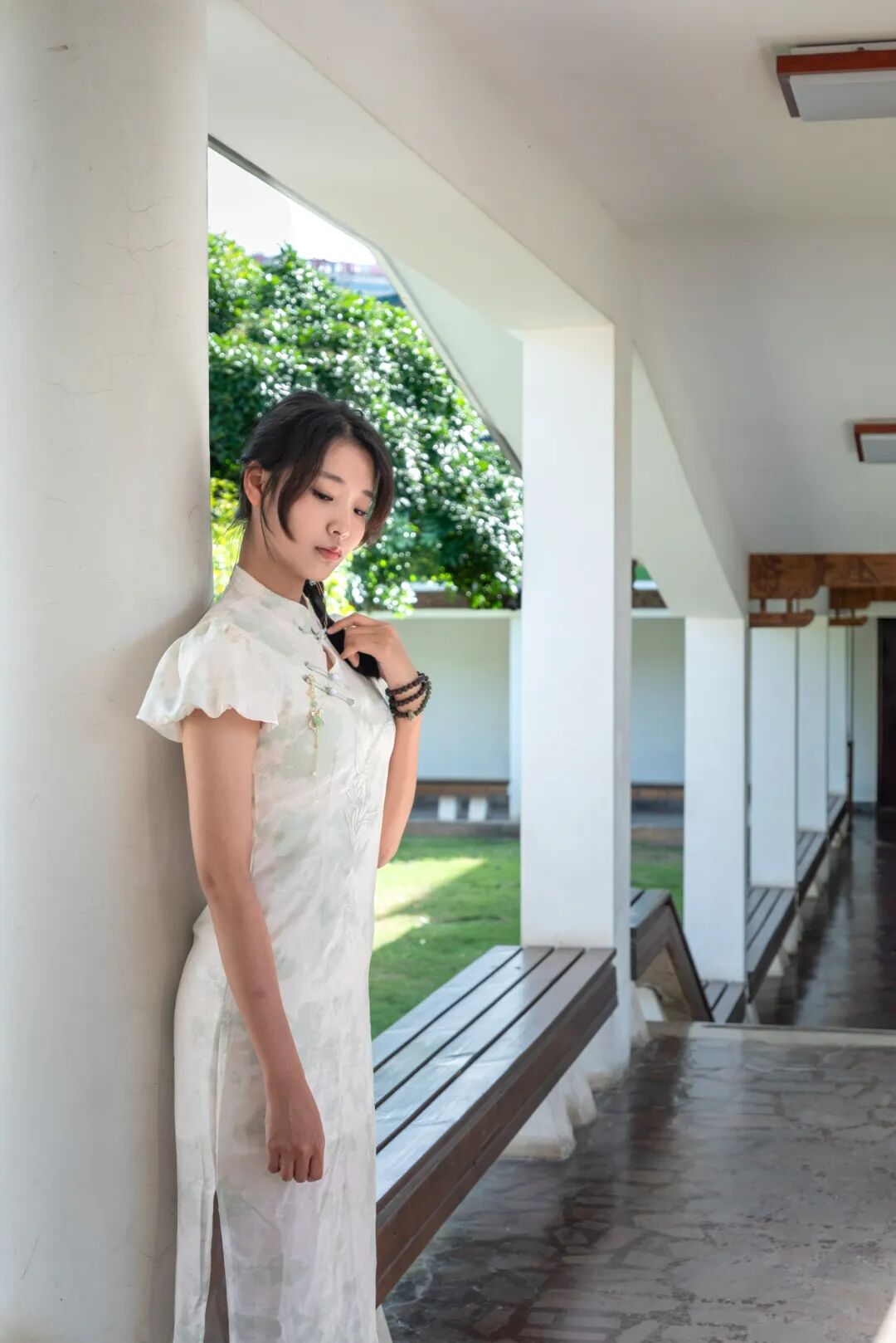 短发的美女可以尝试格子或纯色款旗袍
