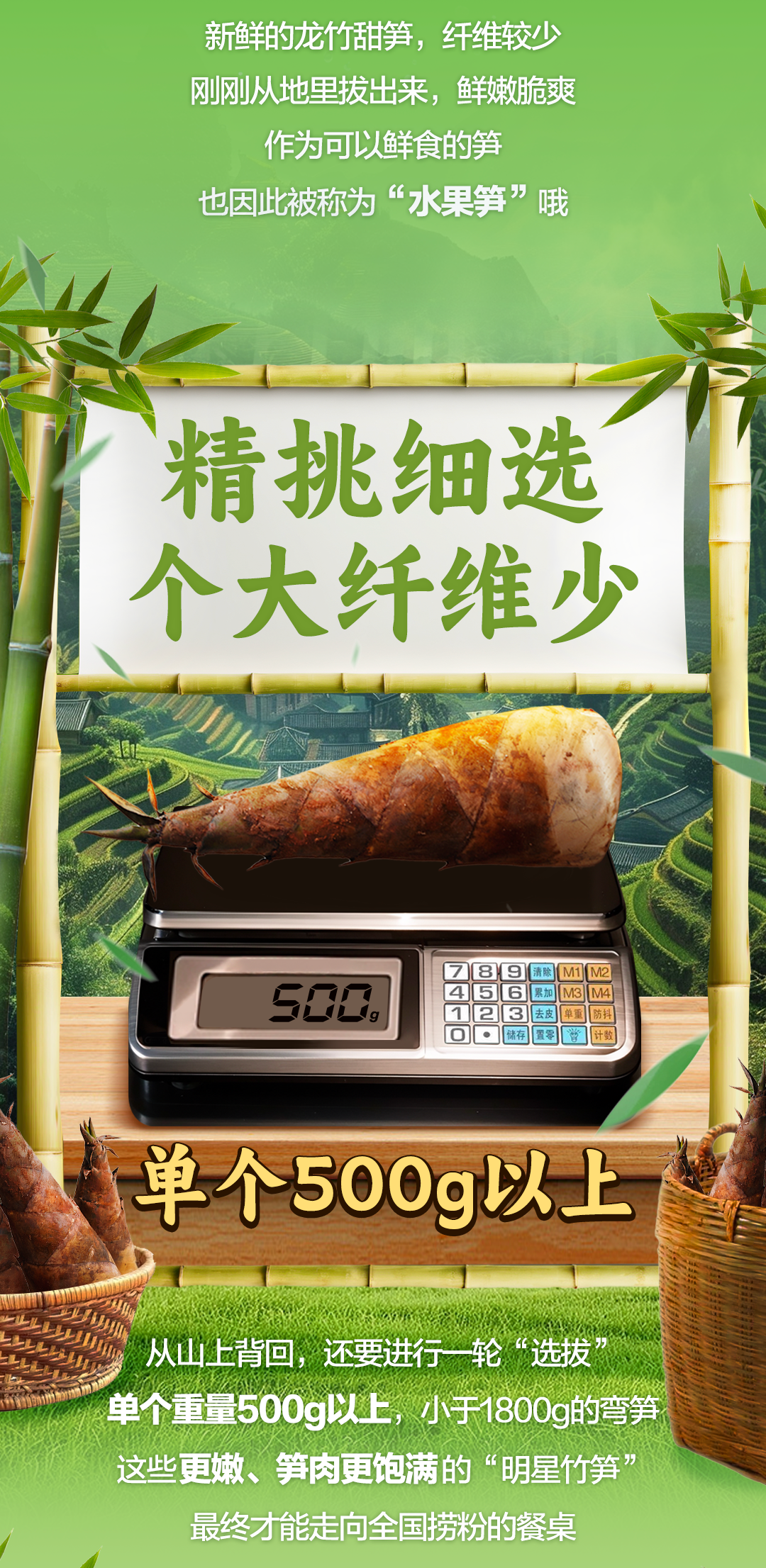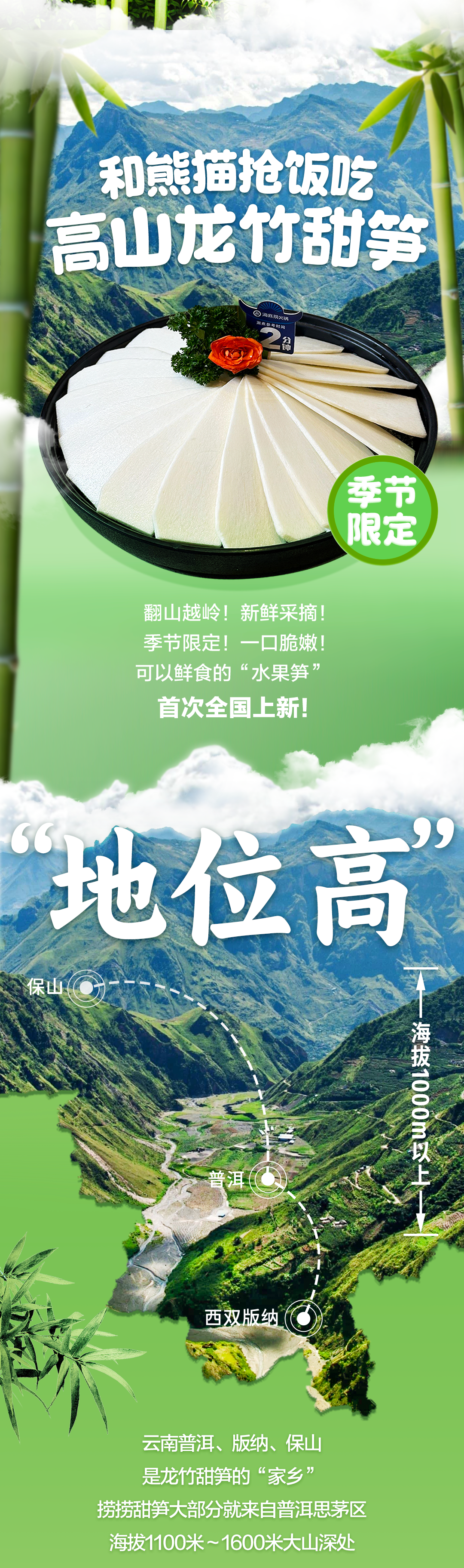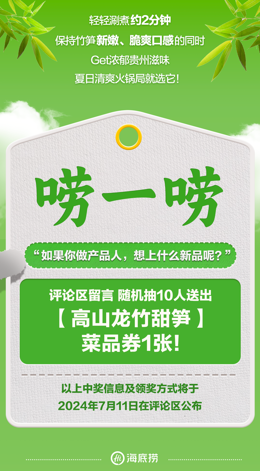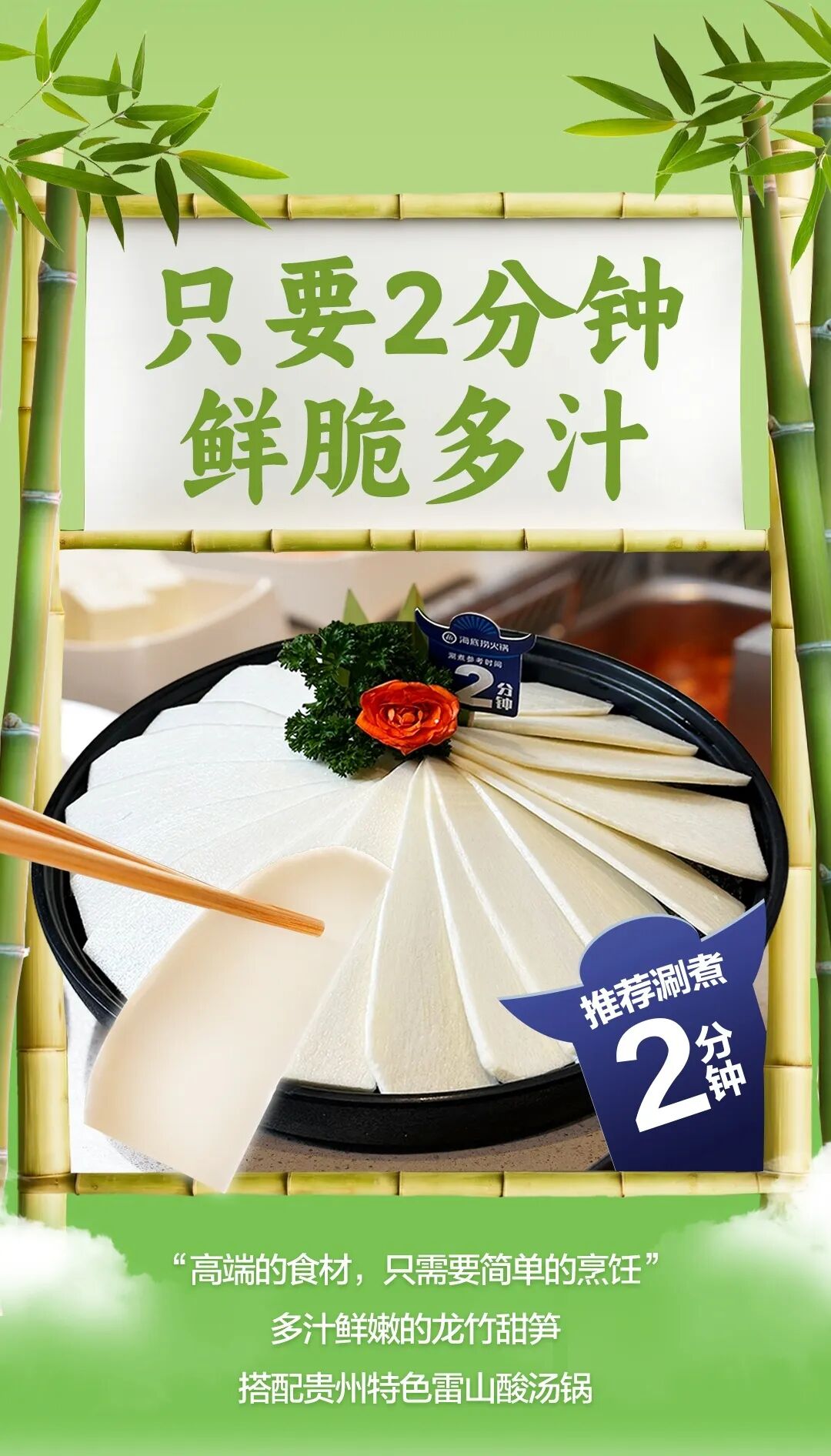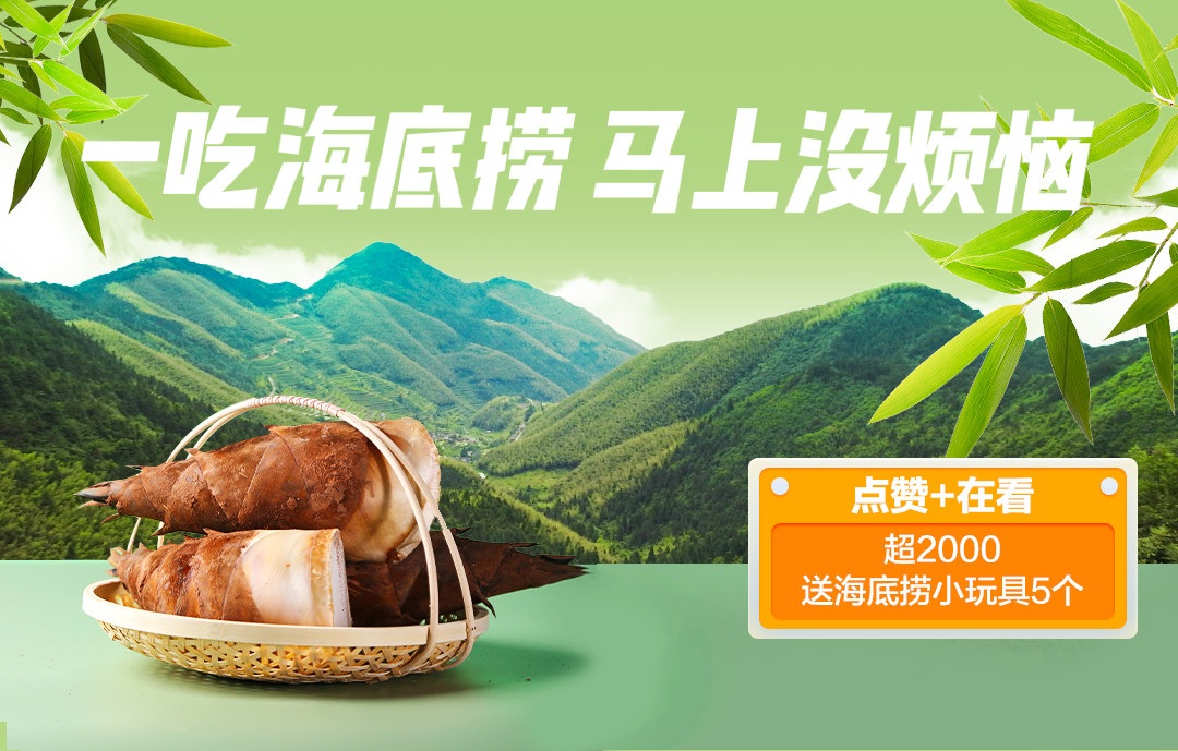 推荐:「点击伸缩式展开」模拟拔笋的过程,借此宣传海底捞新推的高山龙竹甜笋,吸引读者下单品尝。