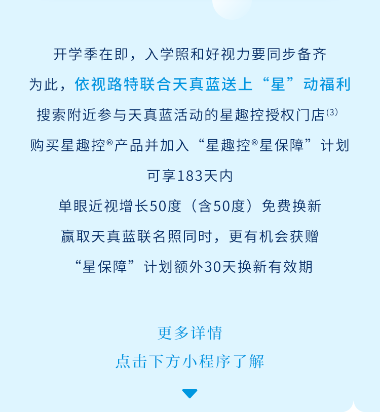 (3) 仅限在南京和重庆参与天真蓝活动的星趣控授权门店,详情见星趣控俱乐部小程序