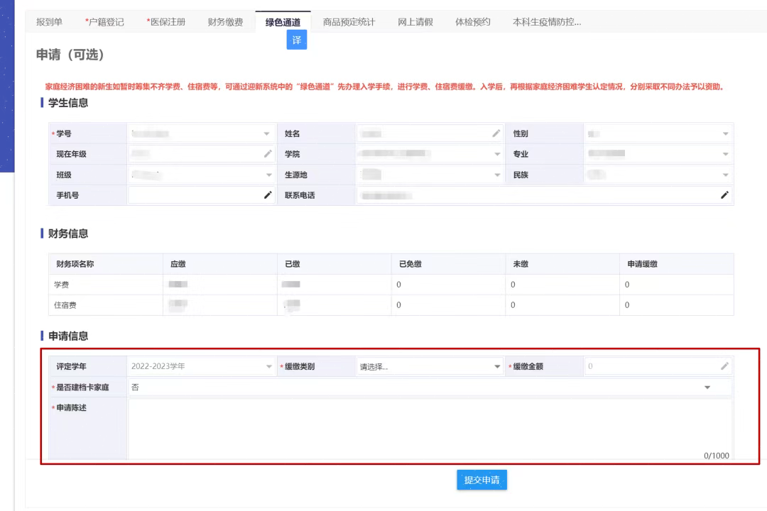 绿色通道只能缓缴学费和住宿费(本科生上限为12000元),其余杂费(教材、保险等)不能缓缴。