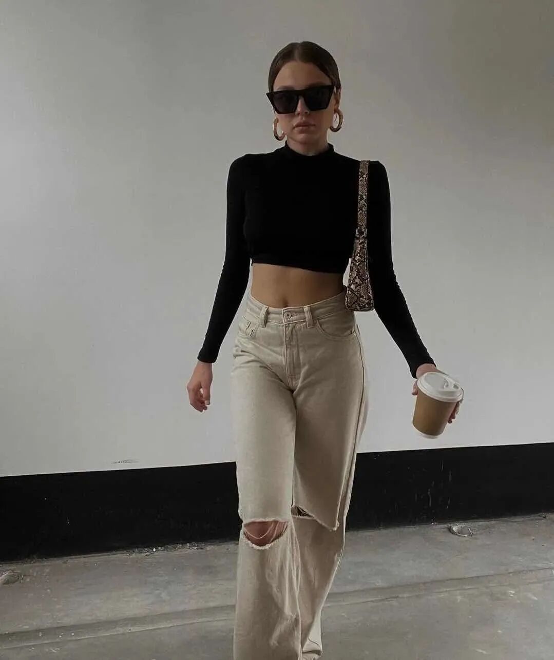 梨形身材姐妹最大的痛点就是胯宽。因此,高腰短Top恰到好处的露肤,巧妙转移了视觉重心。