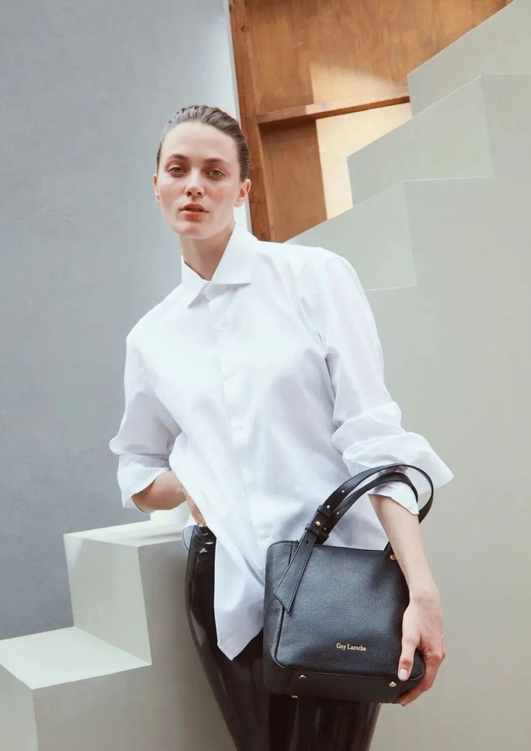 对于沙漏型姐妹来说,白衬衣大面积的留白色彩弱化了身材的前凸后翘,搭配日常元素后,亦是能穿出青春氛围感的基础单品。