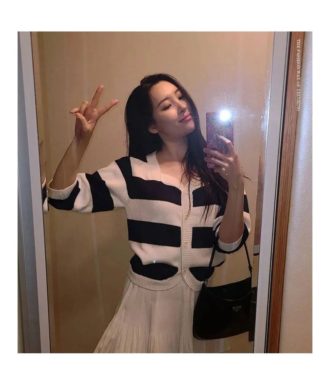 直筒型身材的姐妹如果还在纠结:开学季的第一件单品要入手哪一款?那么不妨先试试衣柜里这件万年百搭的经典条纹衫吧!
