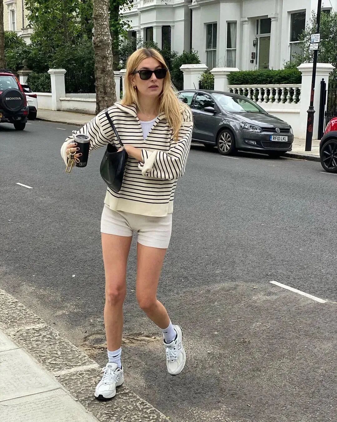 等到天气再降降温,姐妹们就可以搭配针织开衫、运动夹克等单品,防寒又有层次感。