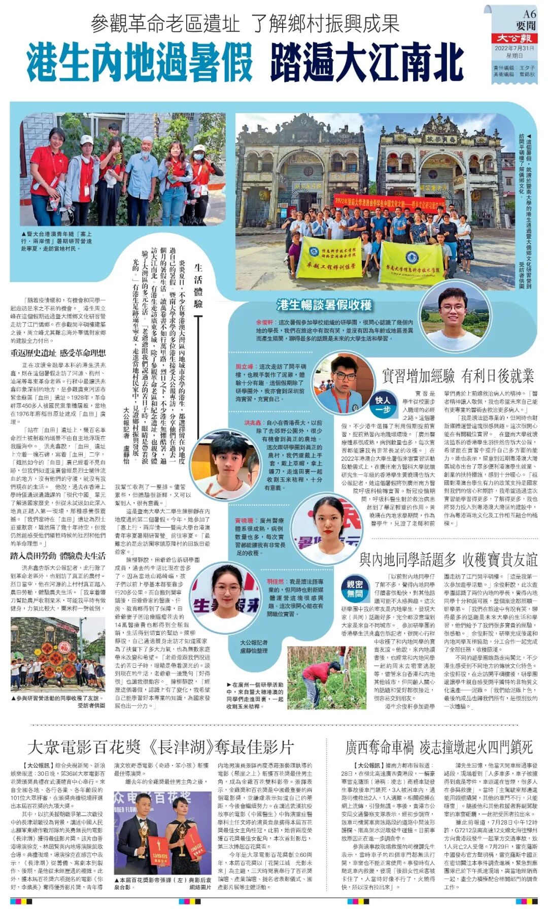 暑假期间,粤港澳大湾区内地城市求学的港生,都选择留在内地度过自己的暑假。有港生走访广东多城,除了参观革命老区和纪念遗址,也亲身体验了大湾区的多元生活;有港生足迹远至宁夏,走进当地村民家中,见证乡村振兴发展。