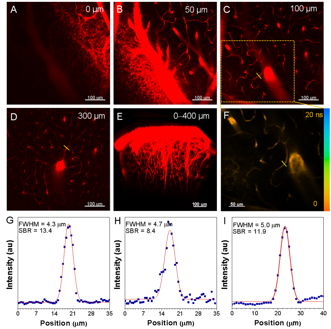 该论文基于结构扭曲的电子给受体分子,利用二者之间的空间电荷转移效应和“扭曲-扭曲”相互作用,设计了具有双光子激发性质的复合物纳米荧光探针,从而用于小鼠脑血管的活体成像。