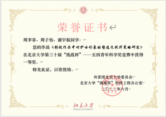 因材施教,因势利导,王志稳指导学生的风格总是如此。一次指导挑战杯项目时,有几名一年级的本科生提出想调研公众对护士的看法,王志稳就引导学生遴选出医疗题材的影视剧作品,针对有护士的影视片段,从其中展现的护理专业角色这一视角进行编码分析;并访谈了卫生健康领域、影视剧领域的相关人员,探讨影视剧中护士的专业角色体现不足这个现象背后的成因和策略。这个项目获得了北京大学挑战杯一等奖,不但让学生对护理专业角色有了更深入的了解,还拓展成为第二课堂活动,引导同学们一起探索护理之美,将科研实践与专业引导融为一体。