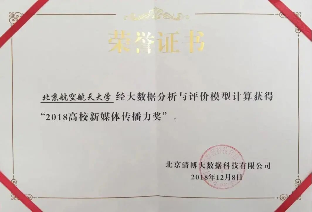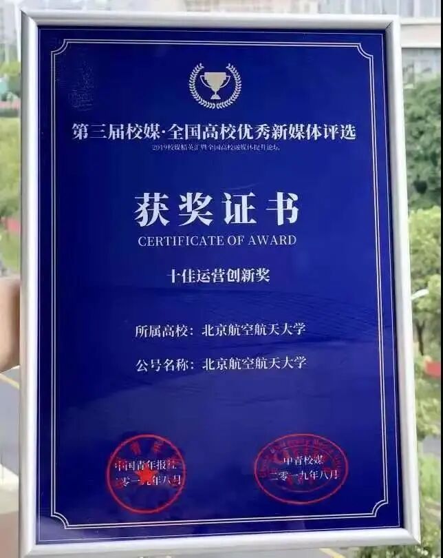 2019年,北航获评“2018-2019年度中国大学官微十强”、“十佳运营创新奖”。