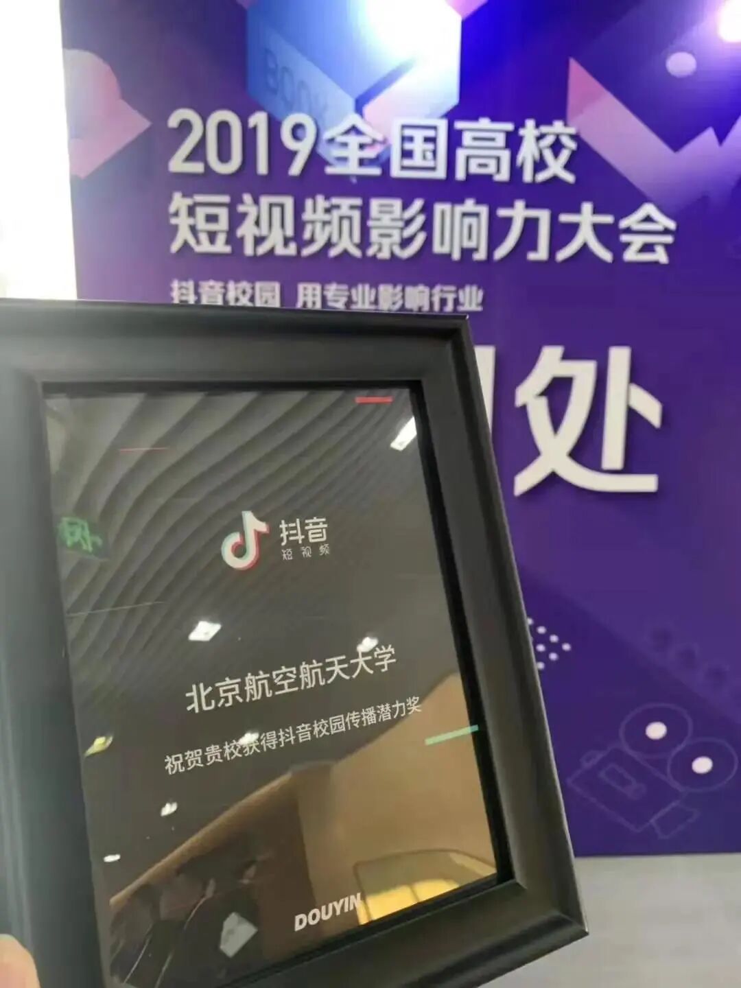 获抖音颁发的抖音校园传播潜力奖