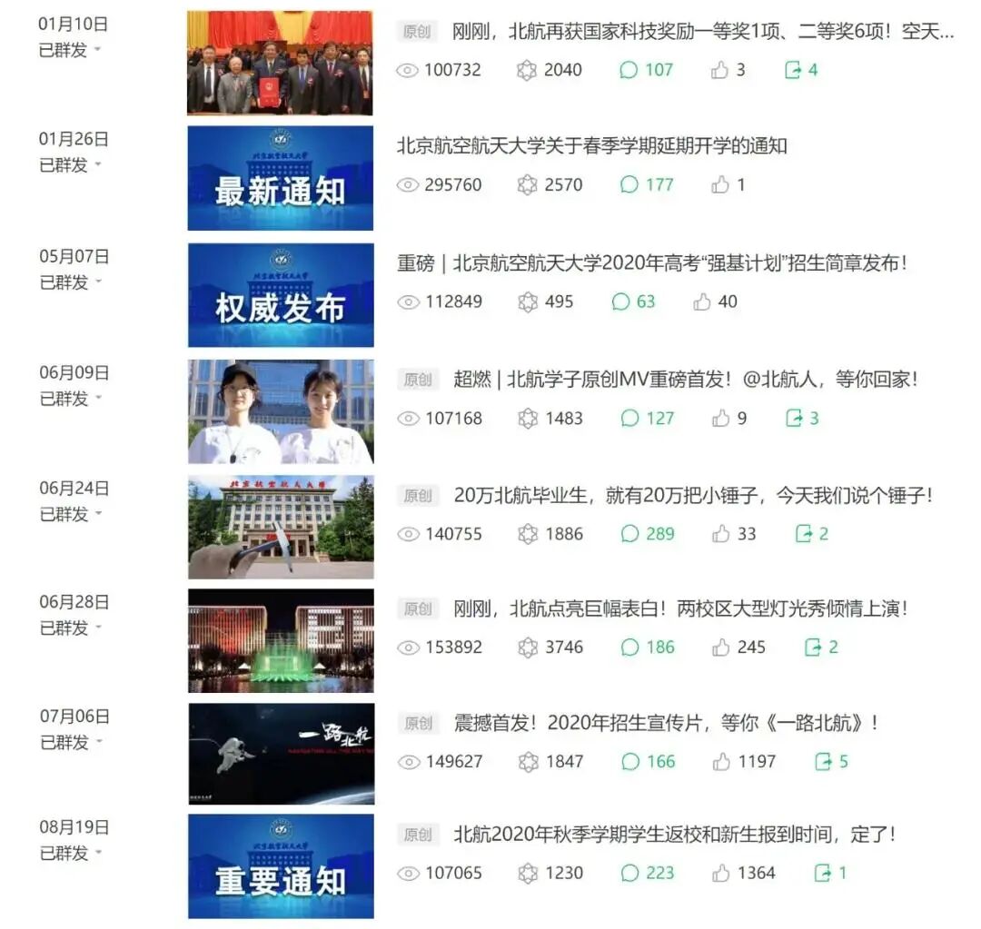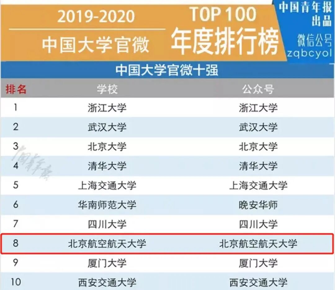 2020年,北航获得2019-2020年度中国大学官微十强。